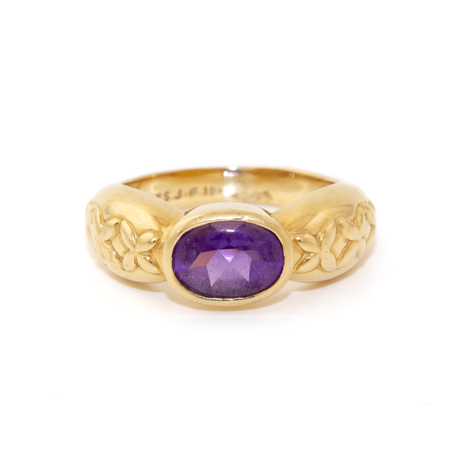 18k Gold x Butterfly Motif Sugarloaf Amethyst Cocktail Ring