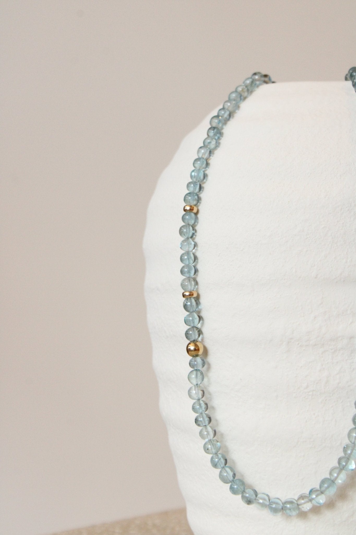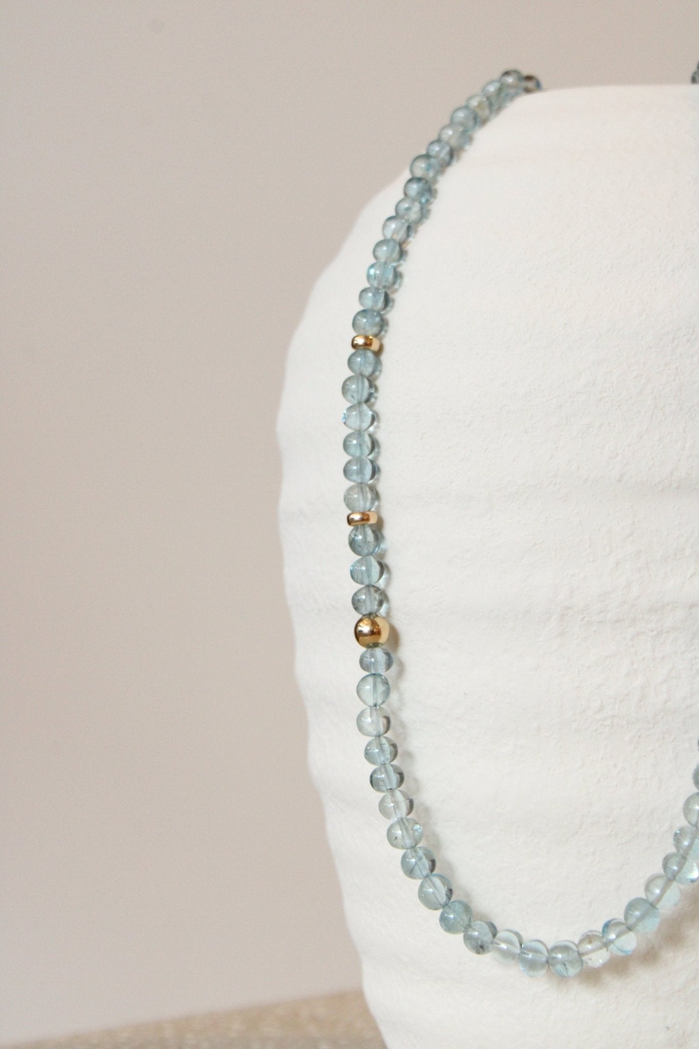 20" Smooth Aquamarine Gem Strand x 14K Gold Beads