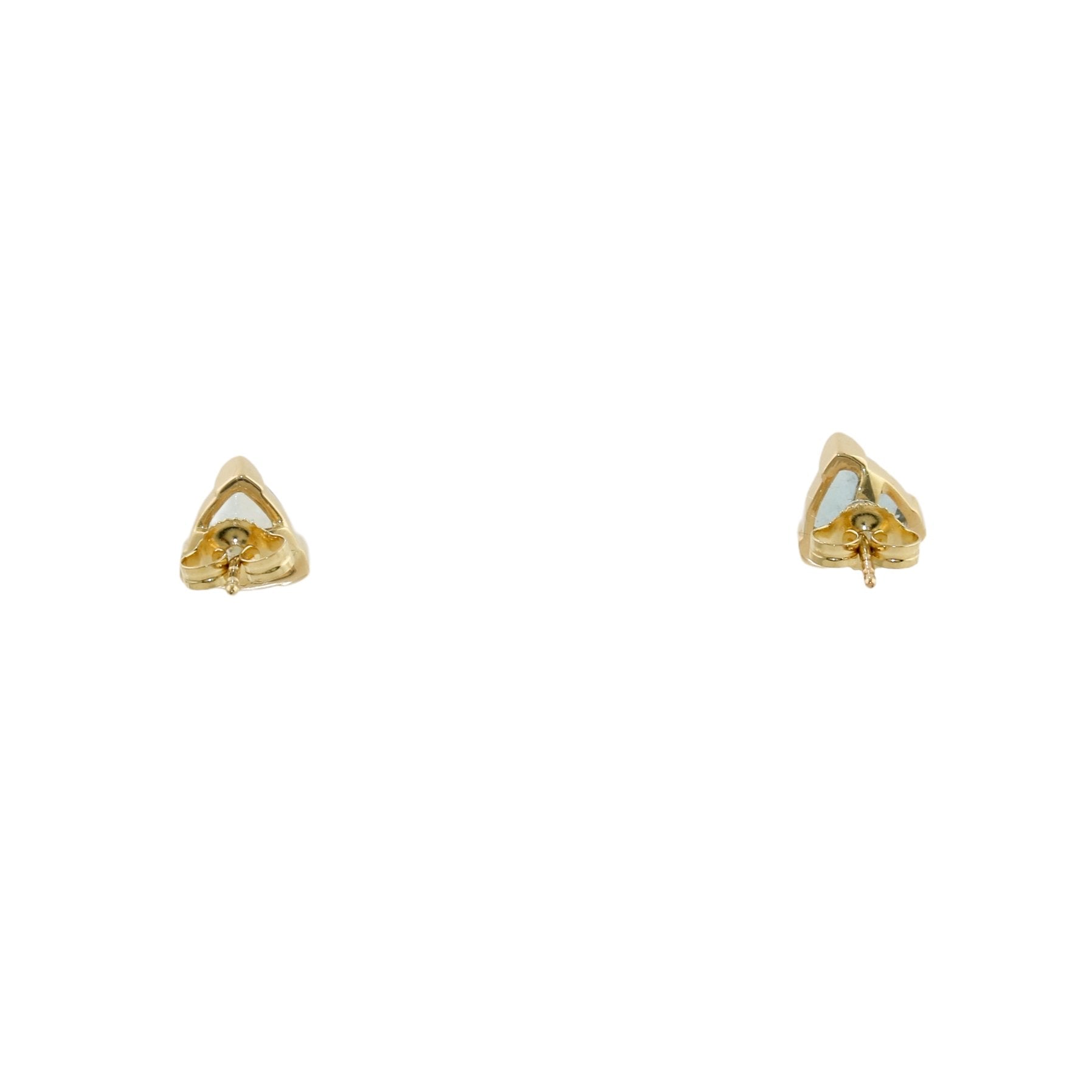 These trillion-cut aquamarine studs are a stunning addition to any jewelry collection. The sparkling, sky-blue hue of the aquamarine stones is captured perfectly in the 14k gold setting, creating a shimmering effect that is sure to turn heads.