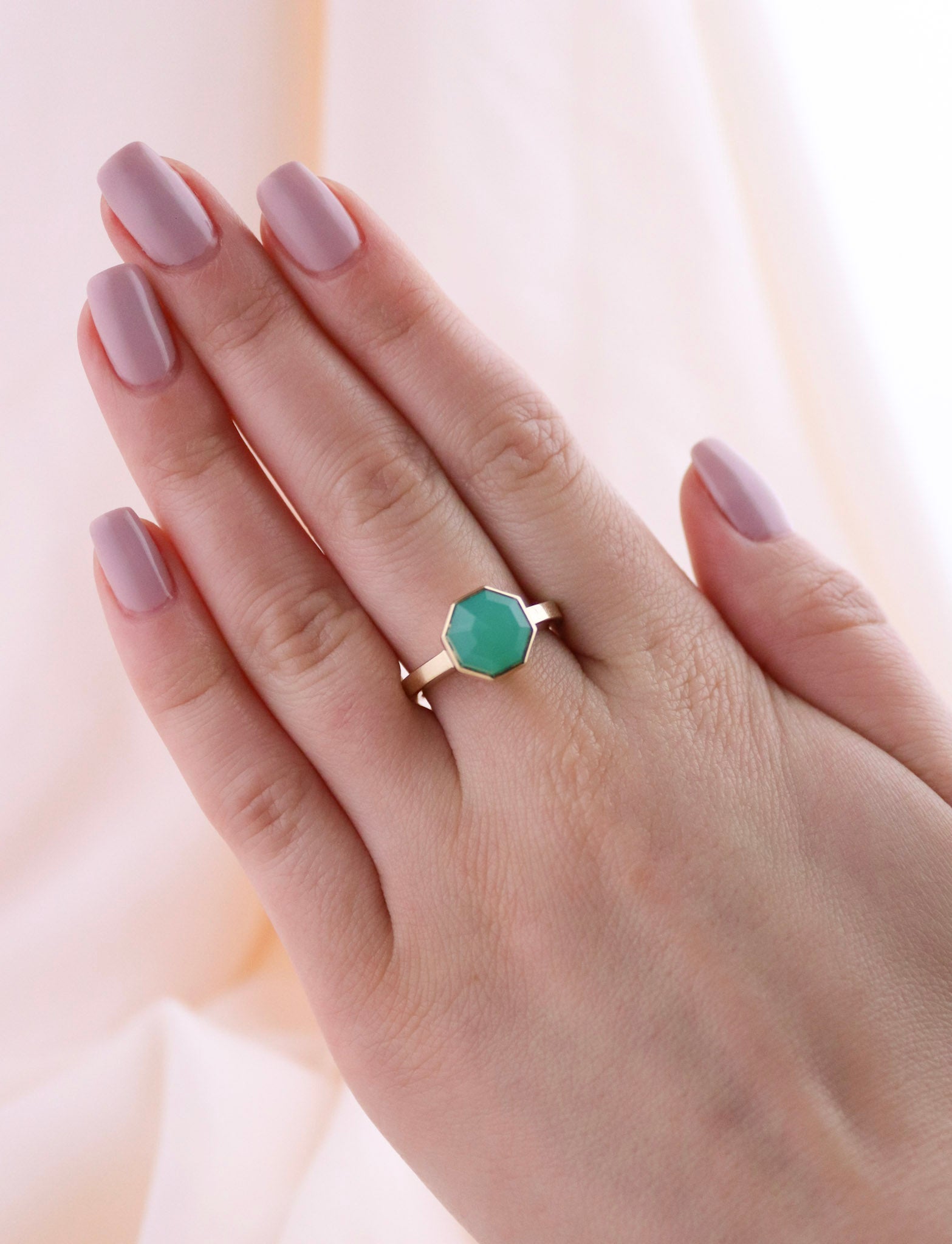 14 K Gold Faceted Chrysoprase Cocktail Ring