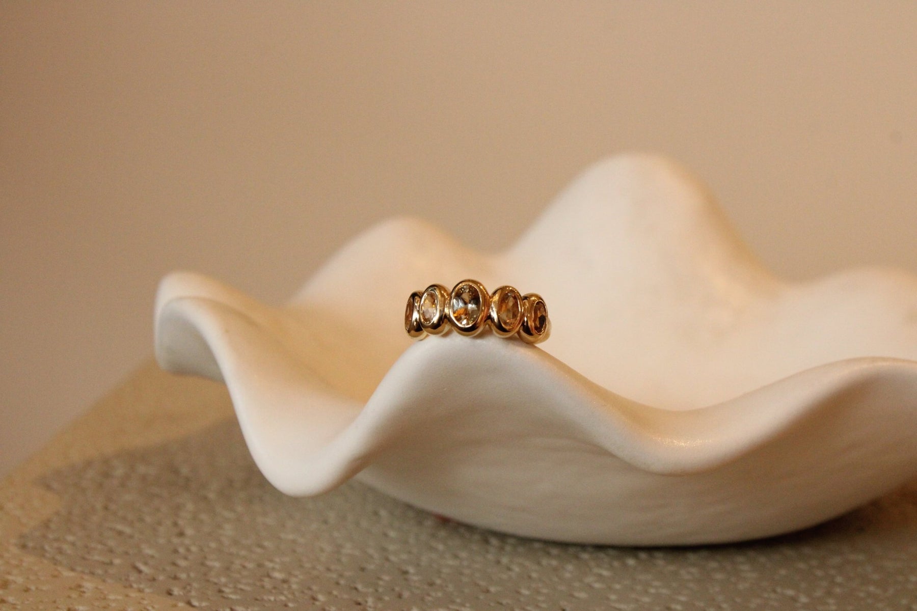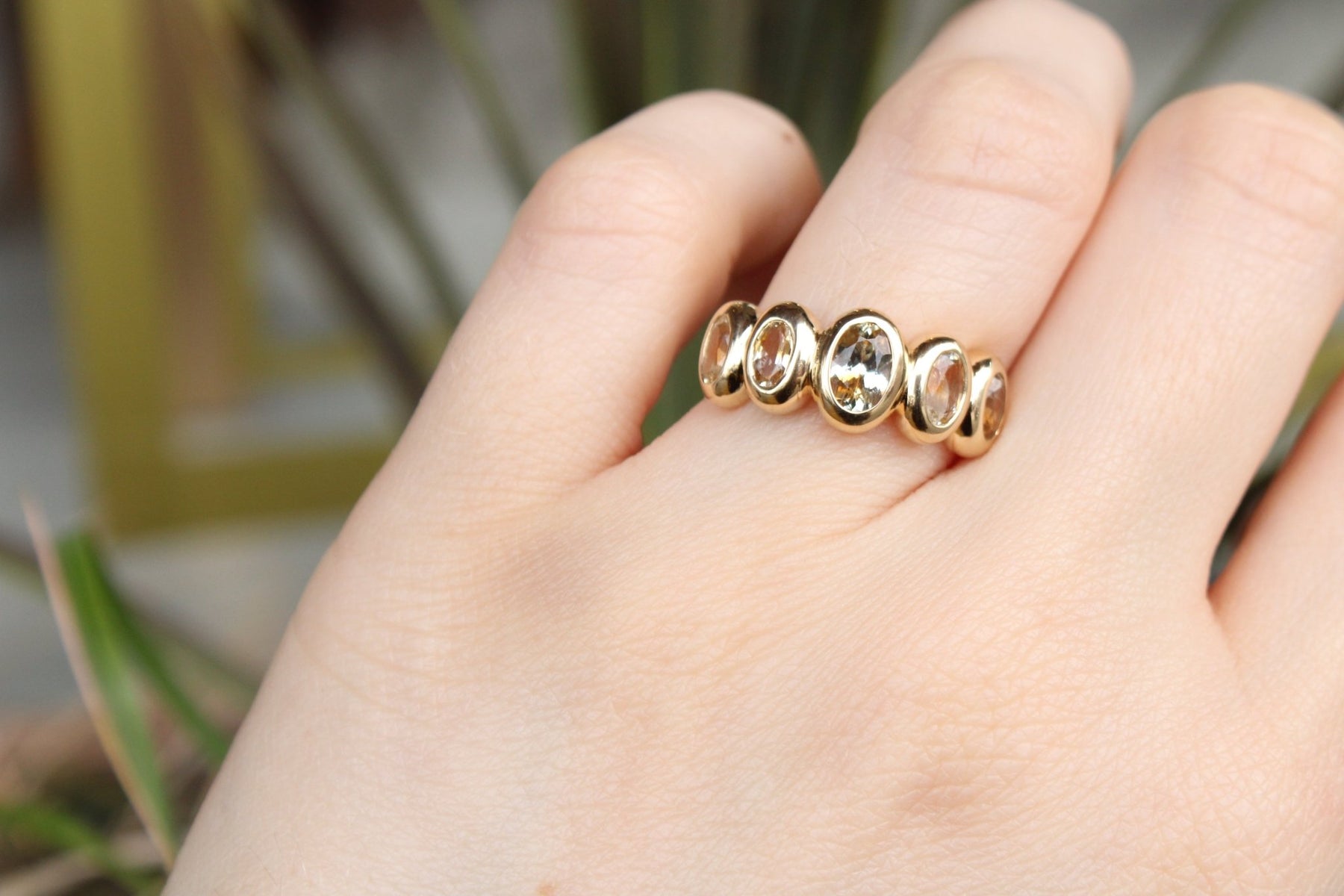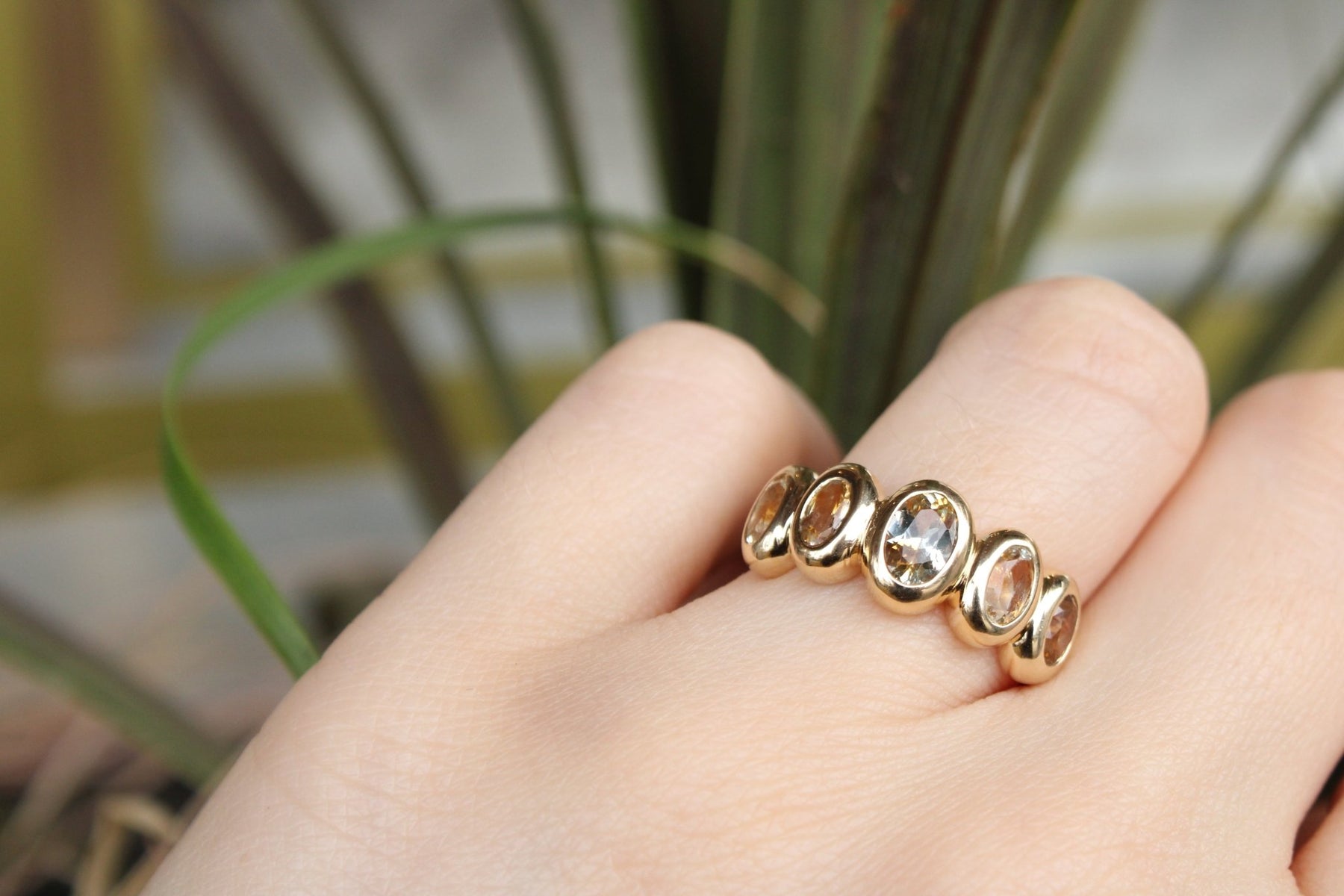 14K Bi- Coloured Sapphire 5 Stone Bezel Set Ring