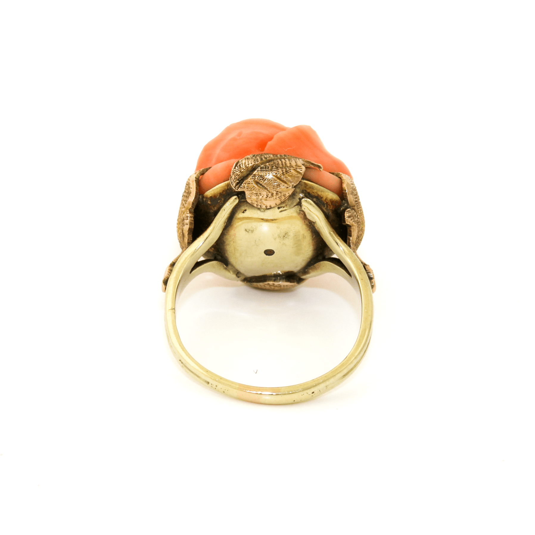 14k Gold x Carved Pink Coral Rose Cocktail Ring