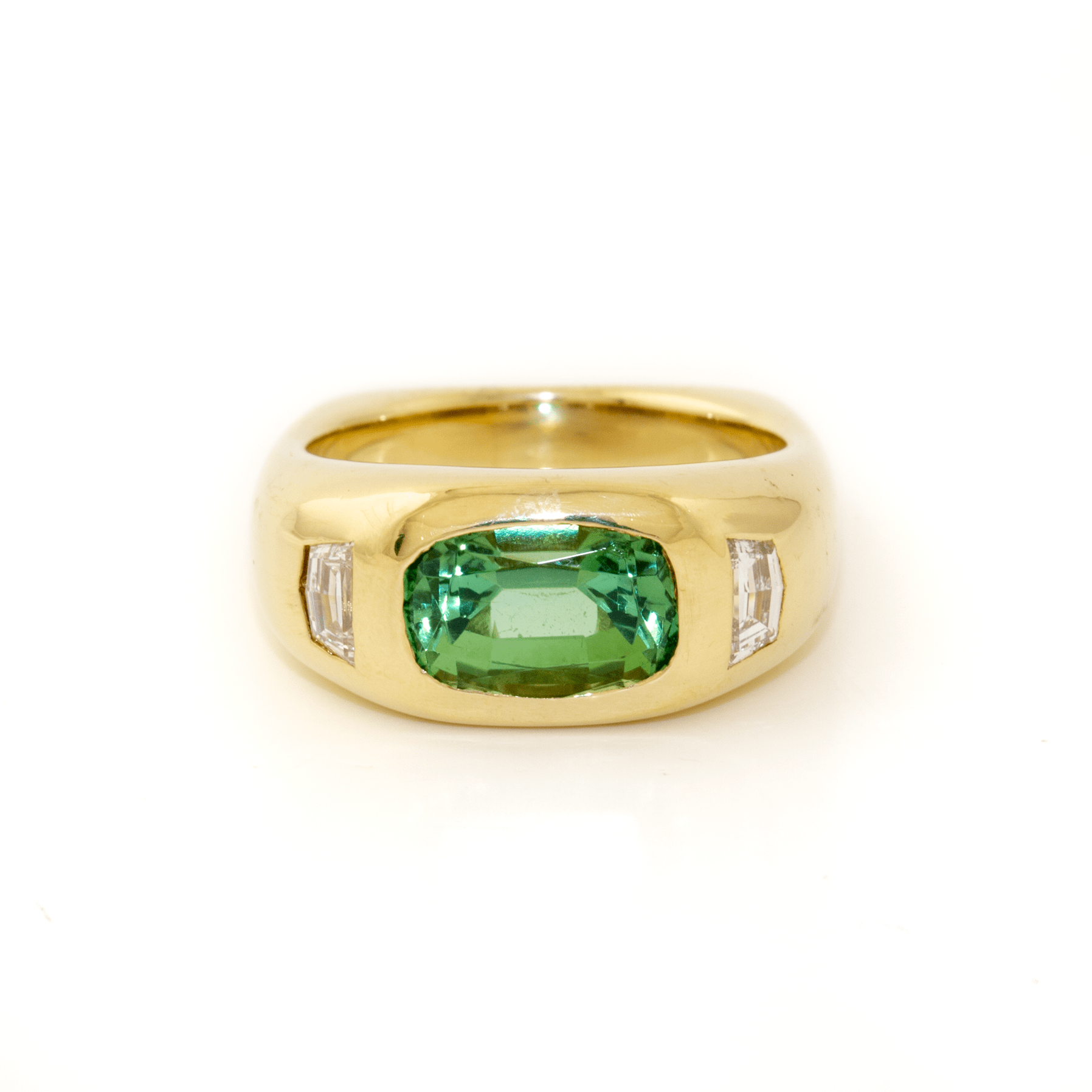 14k Gold x Squared Battista Green Tourmaline & Diamond Ring