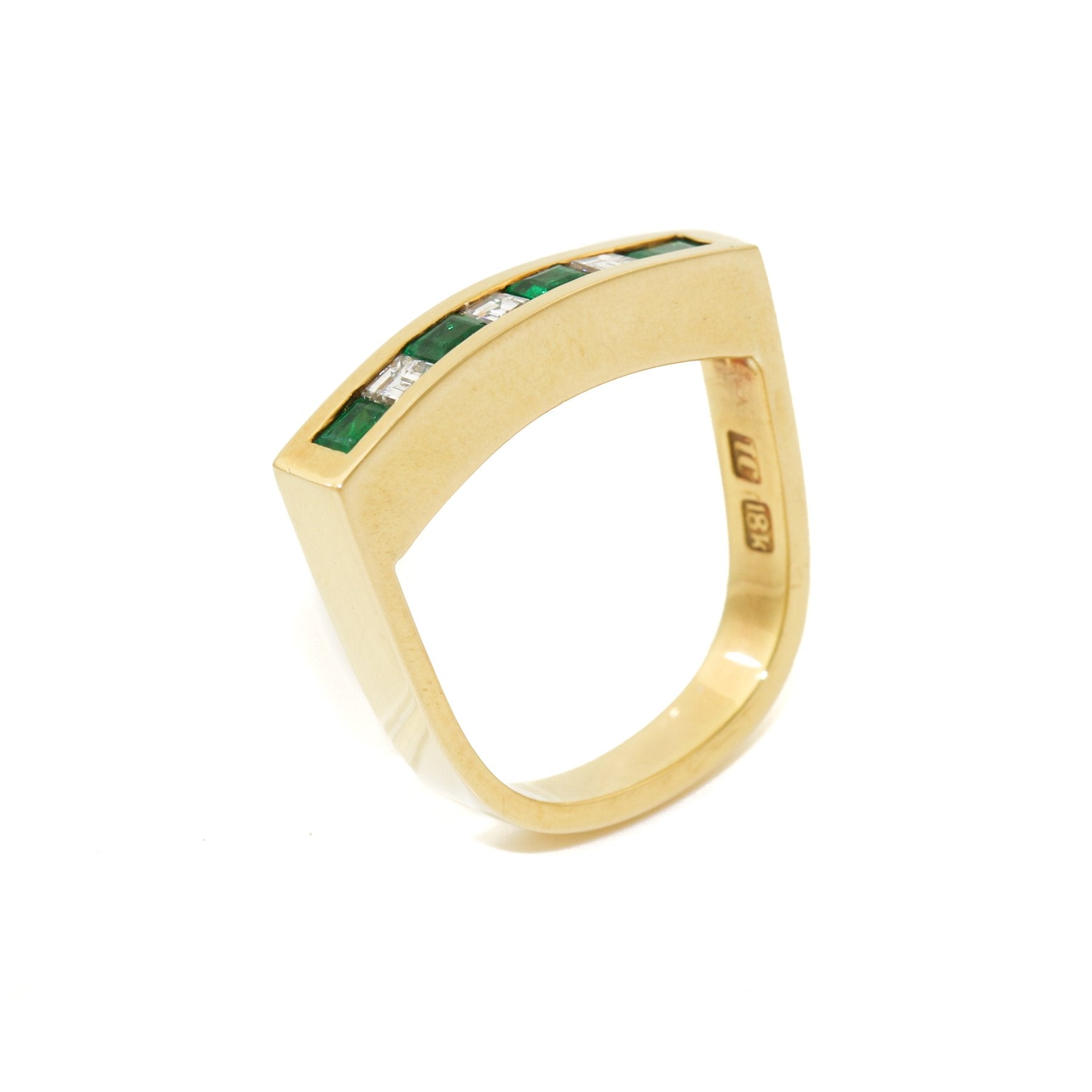 18k Gold x 0.28ct Emerald & Diamond Square-Edge Channel Septet