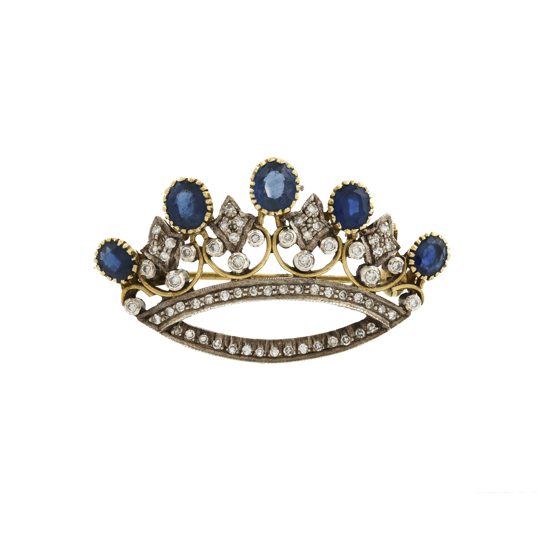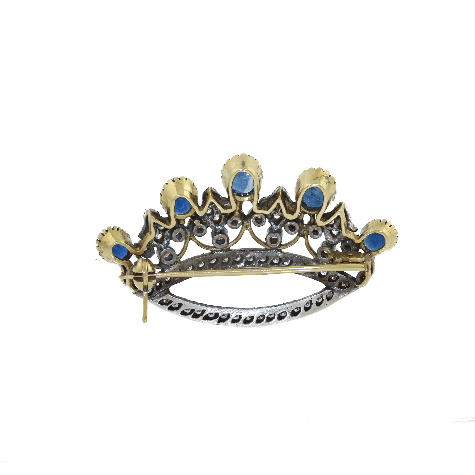 18k Two-Tone x Antique Victorian 2.16 ct Sapphire & Diamond Crown Brooch