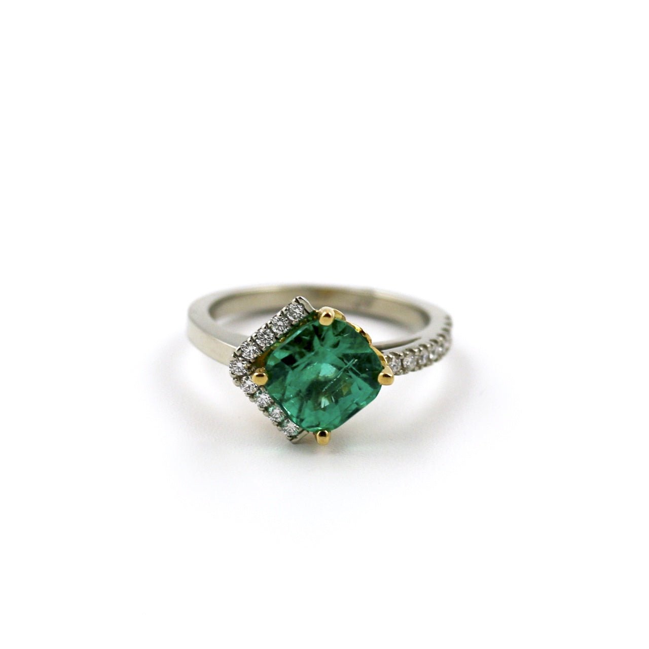 Radiant-Cut 14 KT White Gold Emerald x Pave Diamond Ring