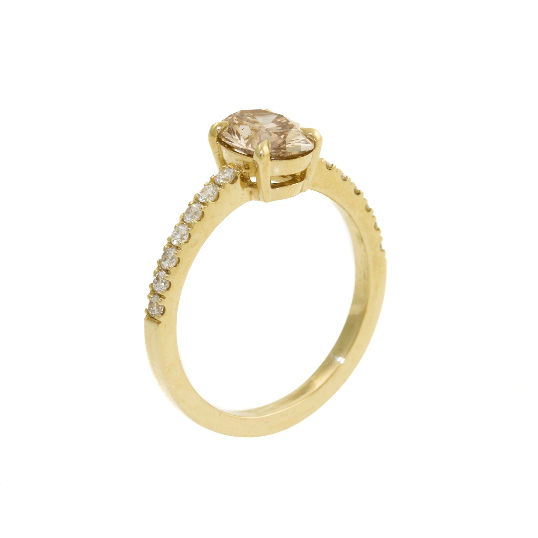 14k Oval Champagne Diamond Solitaire Engagement Ring
