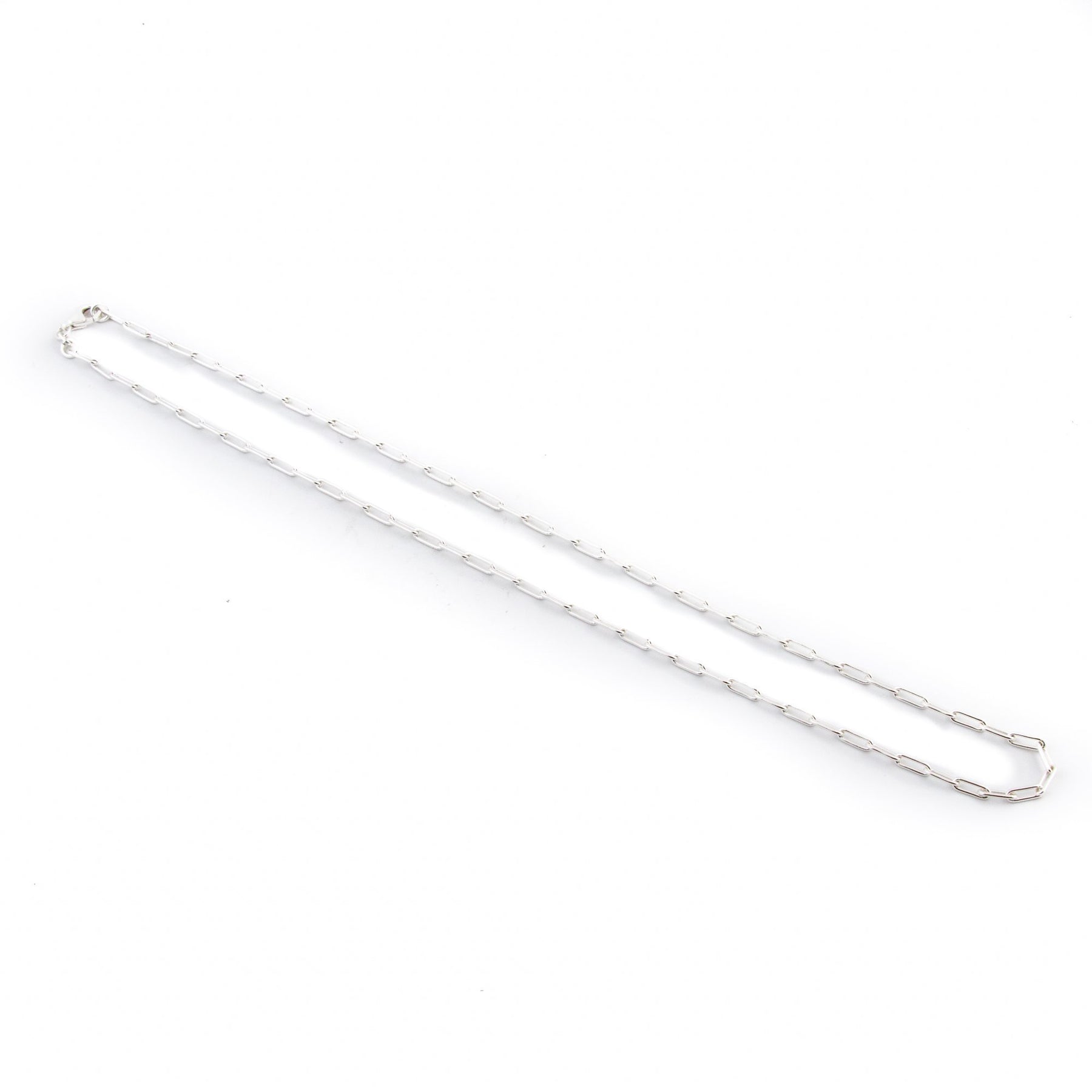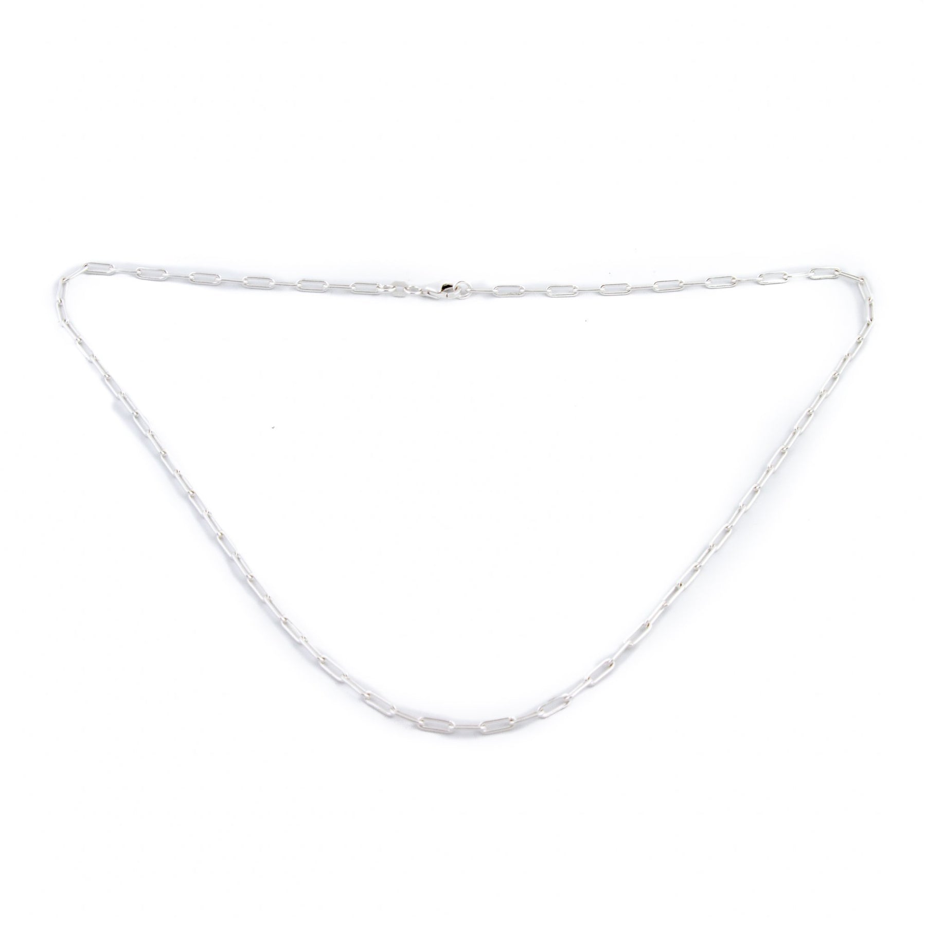 A sweet paperclip chain necklace that lays perfectly on the collarbone. A substantial size and weight, it has the ability to stand alone or mesh perfectly with your other sterling silver pieces!