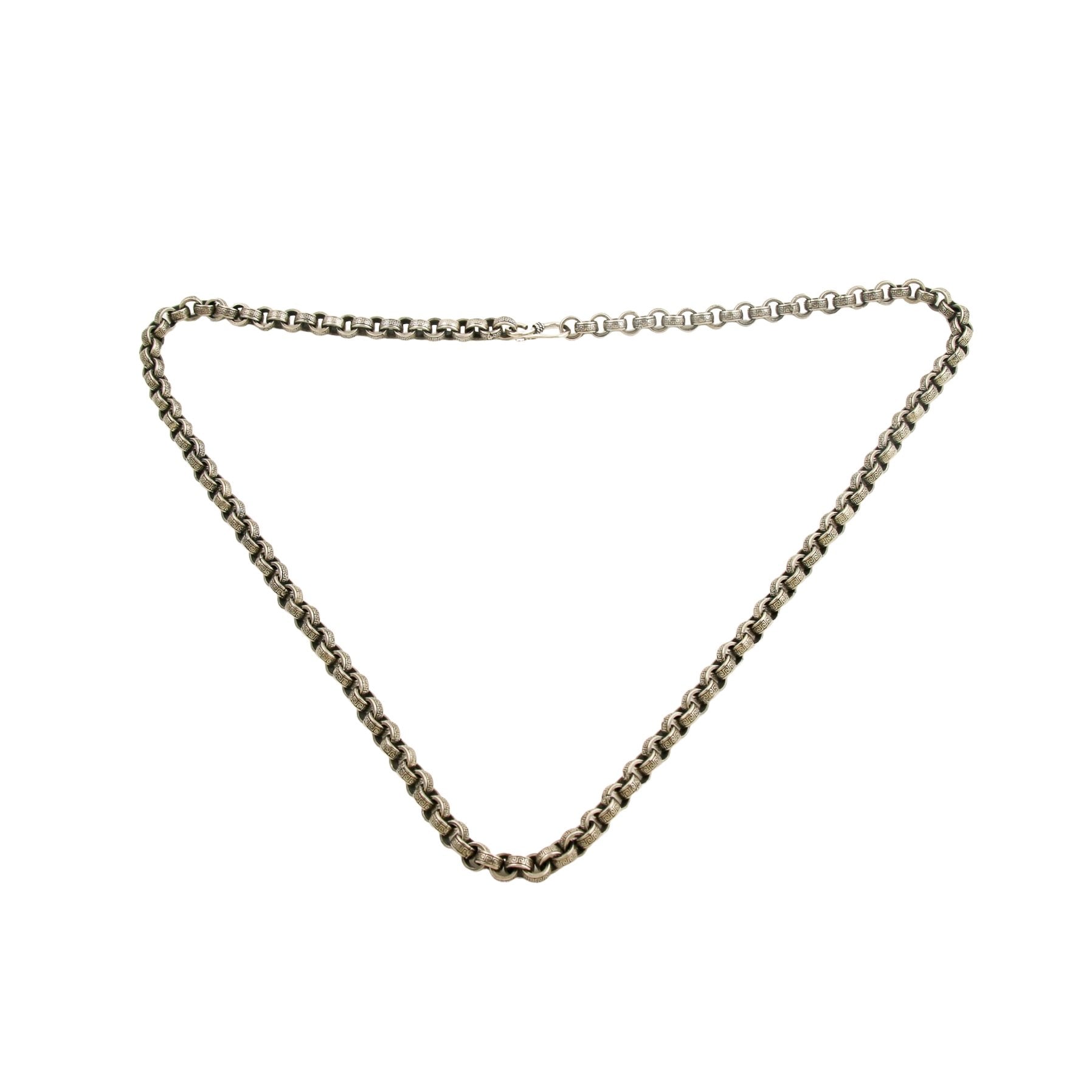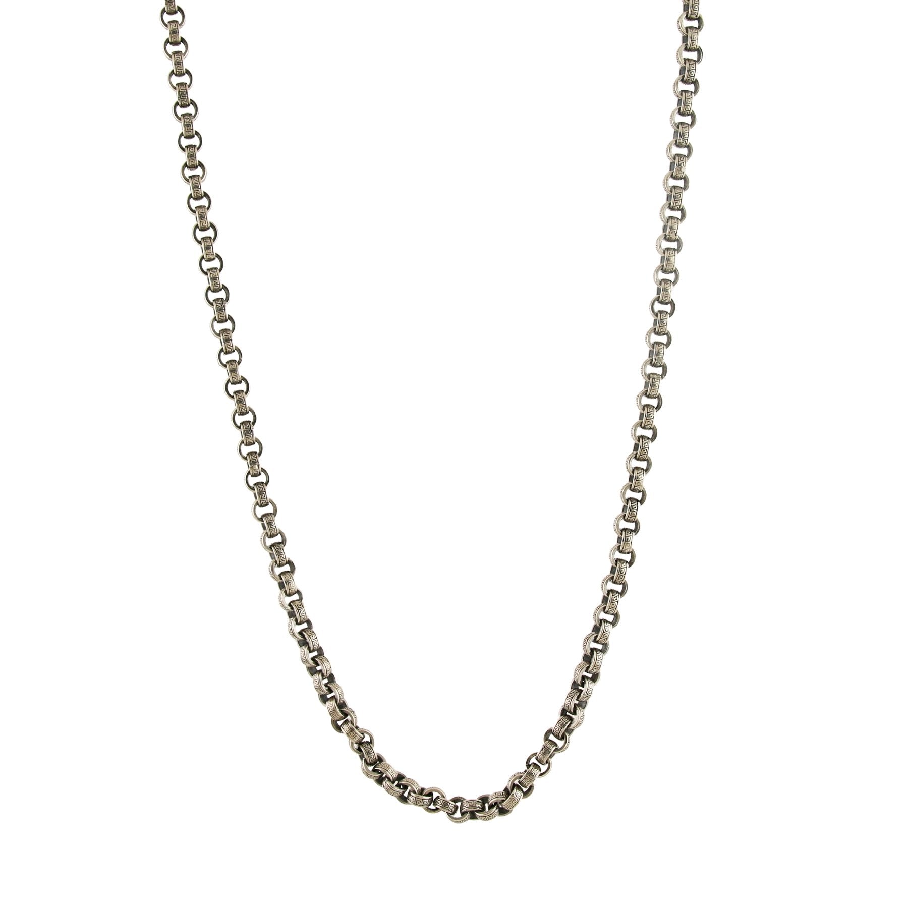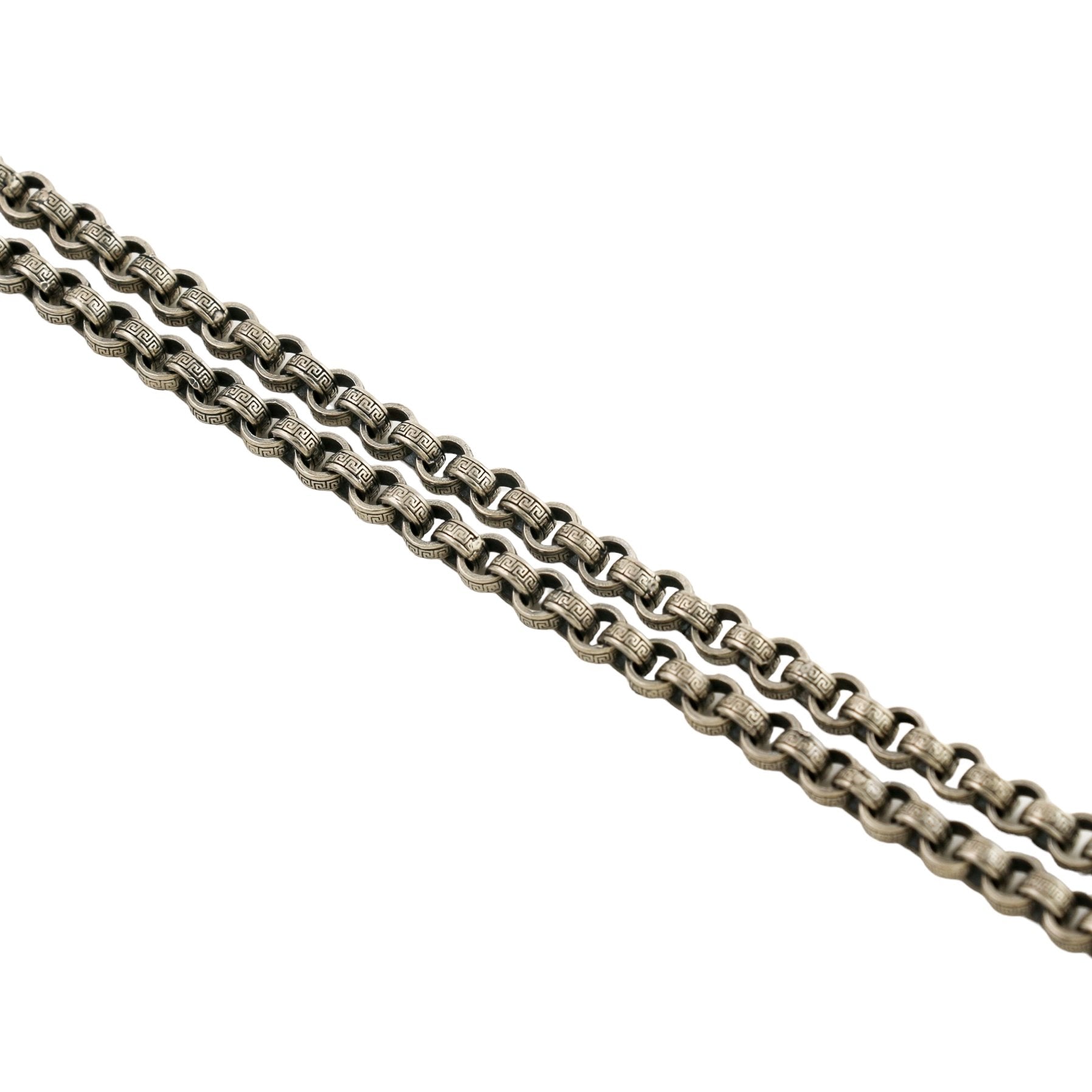 Crafted from high-quality sterling silver, this chain is not only durable but also exquisitely detailed, with each link etched with a unique pattern inspired by the art and architecture of ancient Greece. The thick chain design adds to the boldness of the piece, while the intricate etchings ensure that it catches the eye.