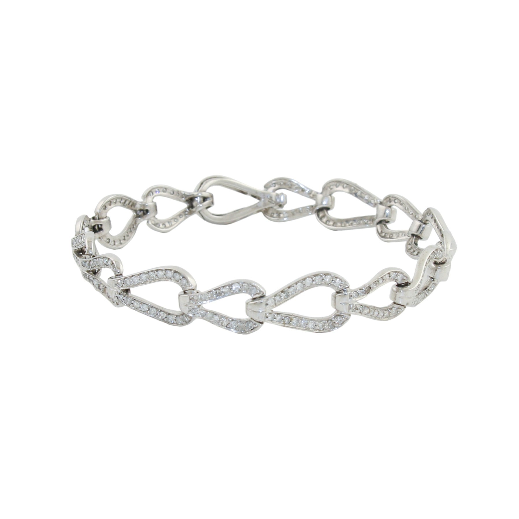 14k White Gold x Teardrop Link 2ct Diamond Bracelet