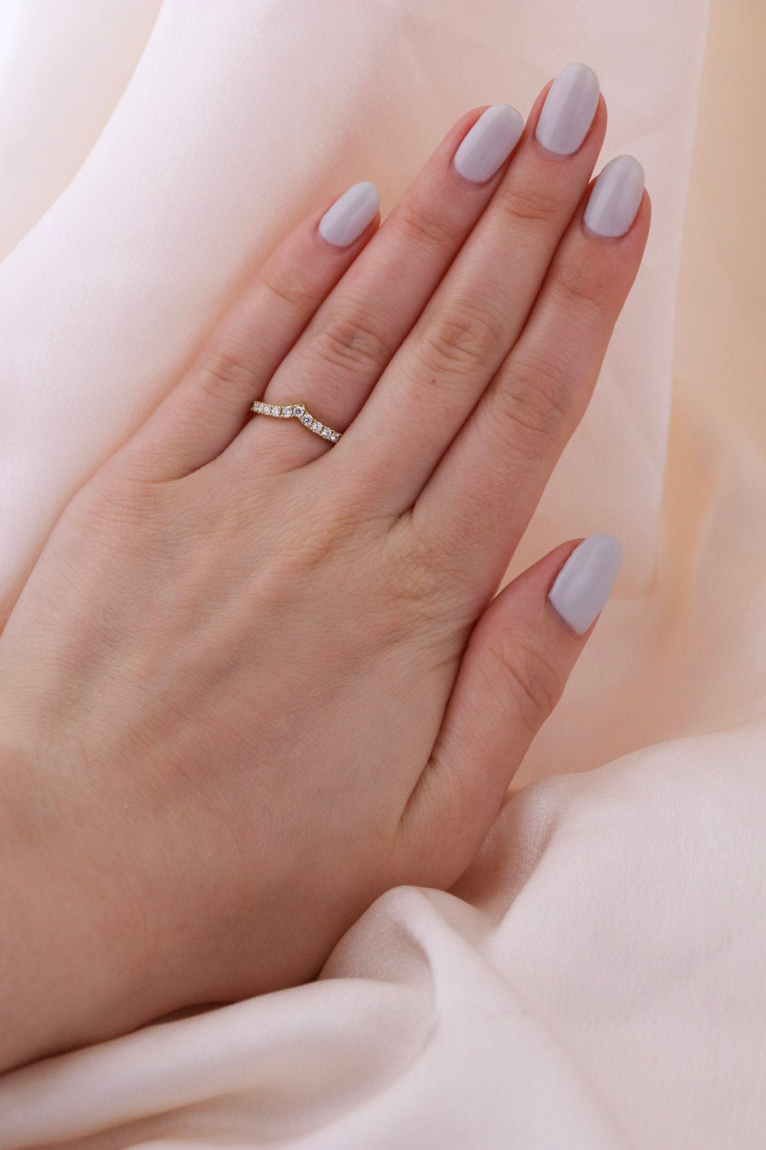 Simple contemporary tiara style ring lined with diamonds that can be stacked with an engagement ring creating a wedding suite or stacked up and added to your collection! The swoop design creates a delicate fit and interesting appearance. Perfect to add to your other gold, silver and turquoise jewelry.
