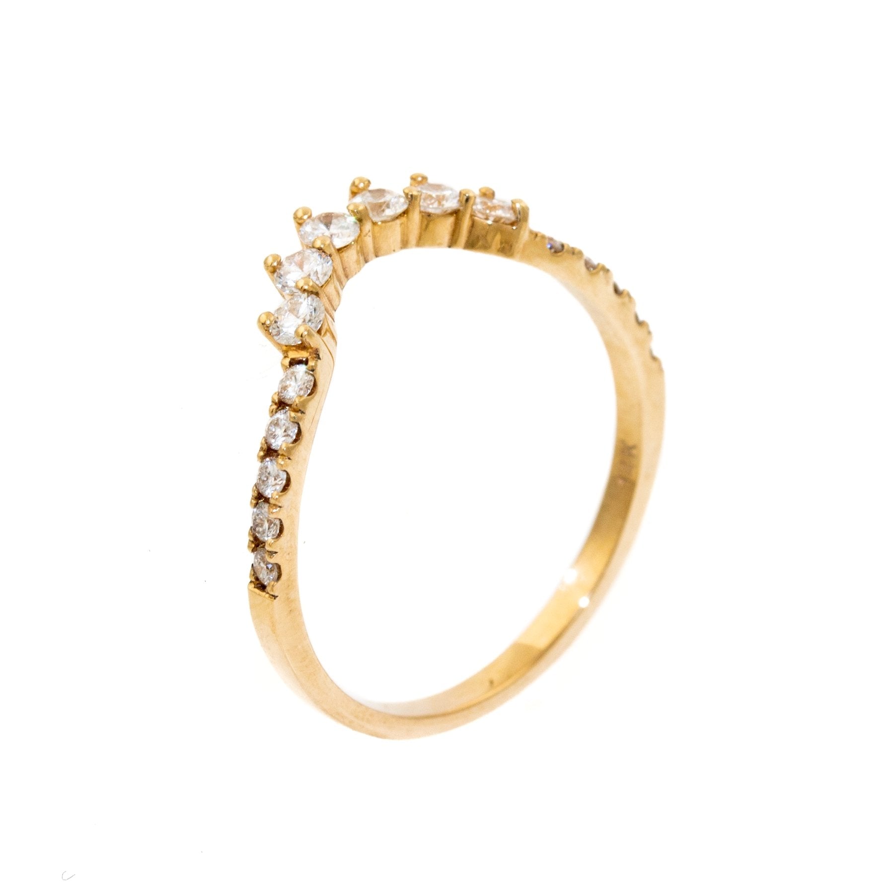 Gorgeous contemporary tiara style ring lined with diamonds that can be stacked with an engagement ring, creating a wedding suite, or stacked up and added to your collection! The curved design creates a delicate and flattering appearance. Perfect for adding to your other gold, silver and turquoise jewelry.