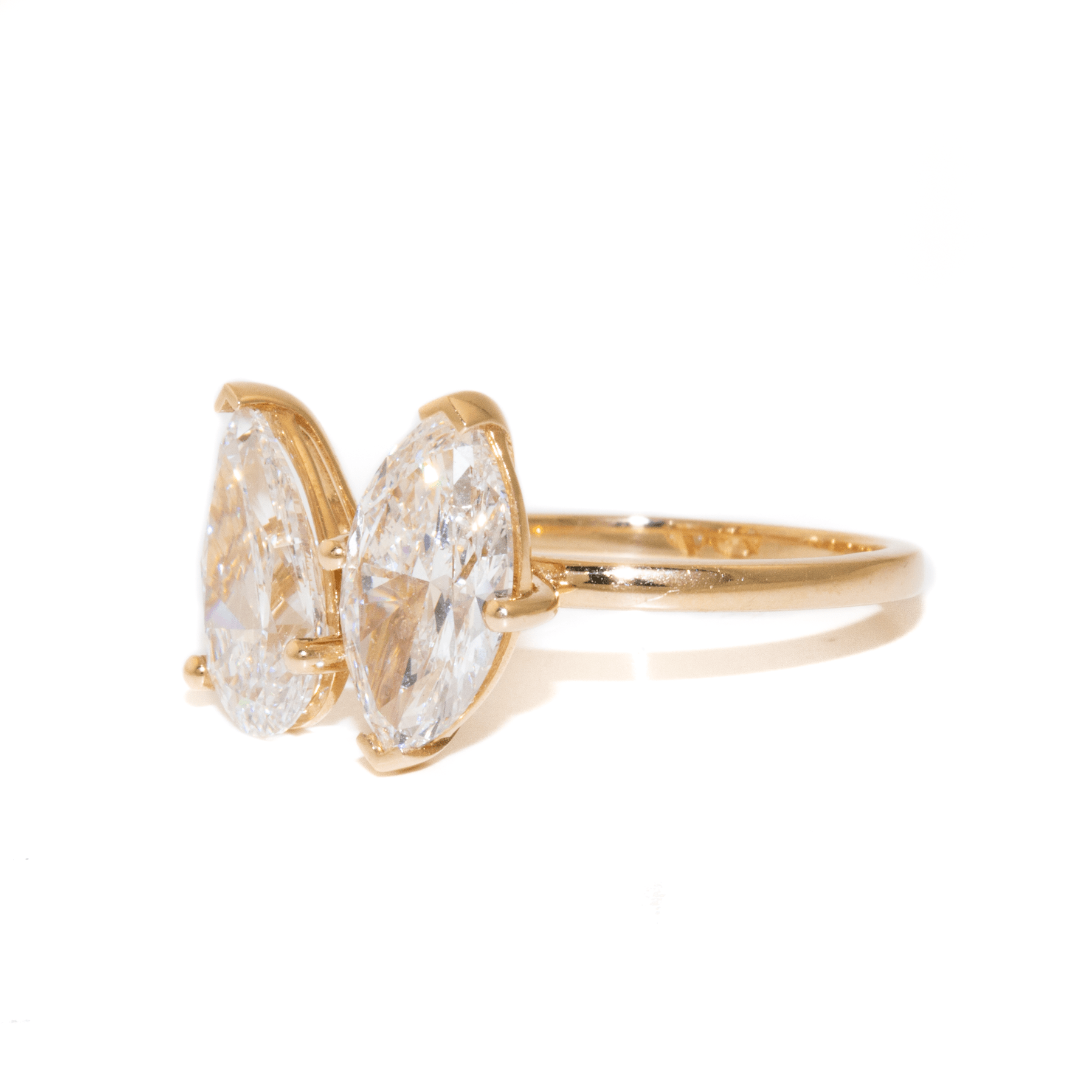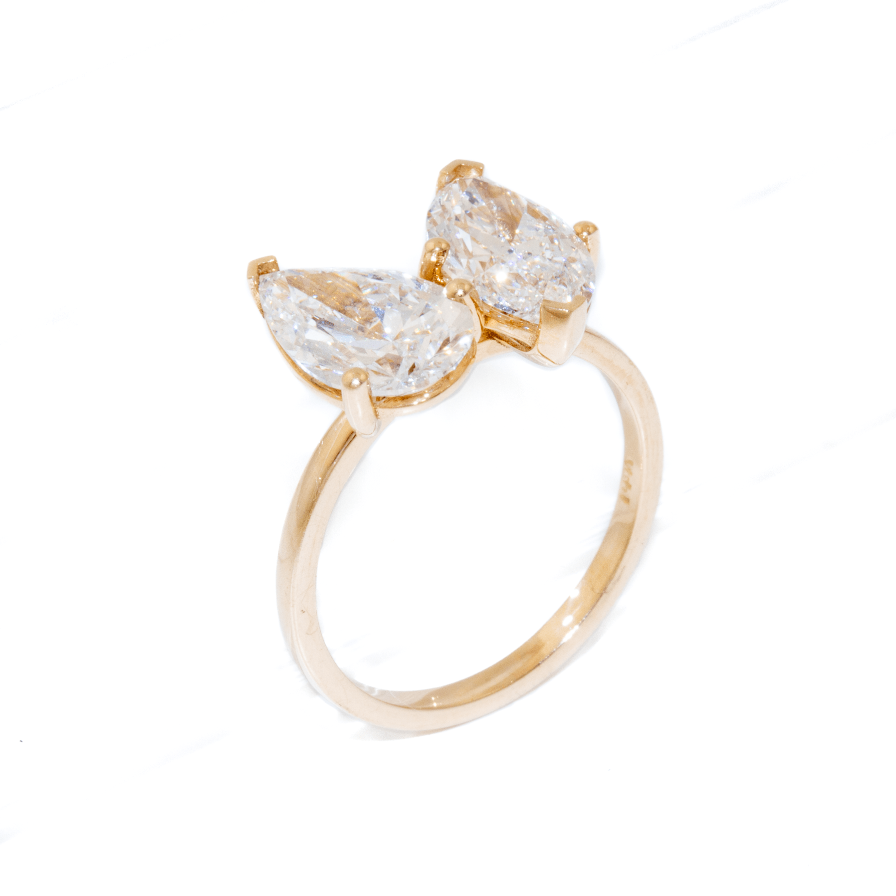 14k Gold x 4.04ctw Lab Diamond Pear & Marquise "Toi et Moi" Ring