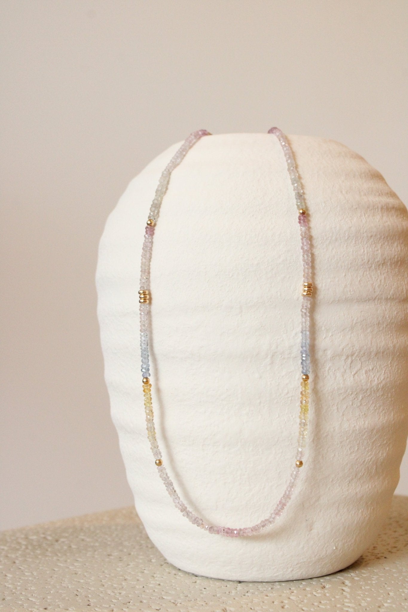 19" Rainbow Pastel Sapphire Gem Strand x 14K Gold Beads