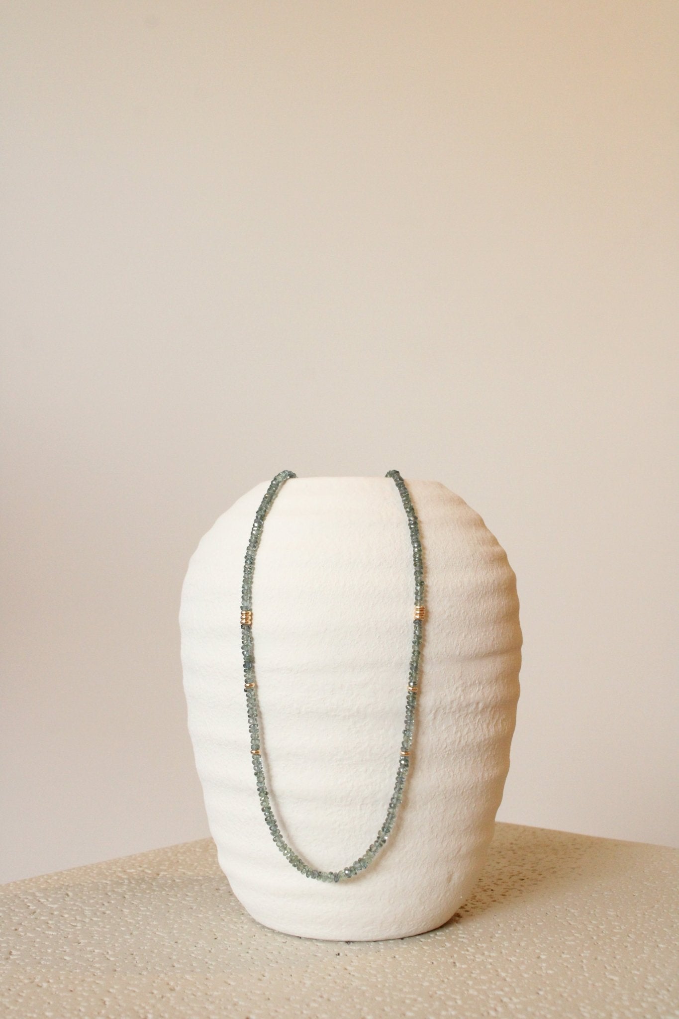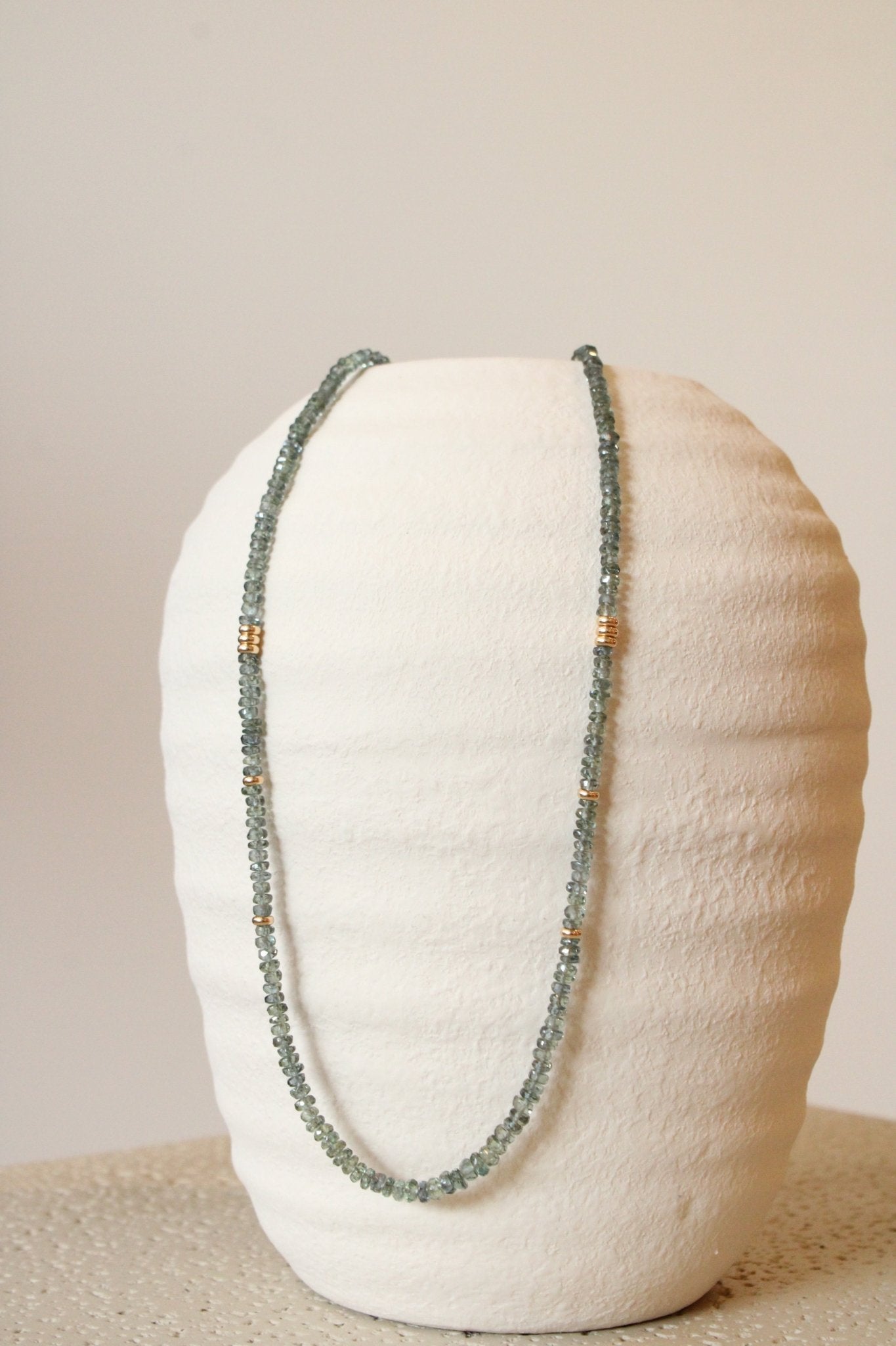 19" Faceted Teal Sapphire Gem Strand x 14K Gold Beads
