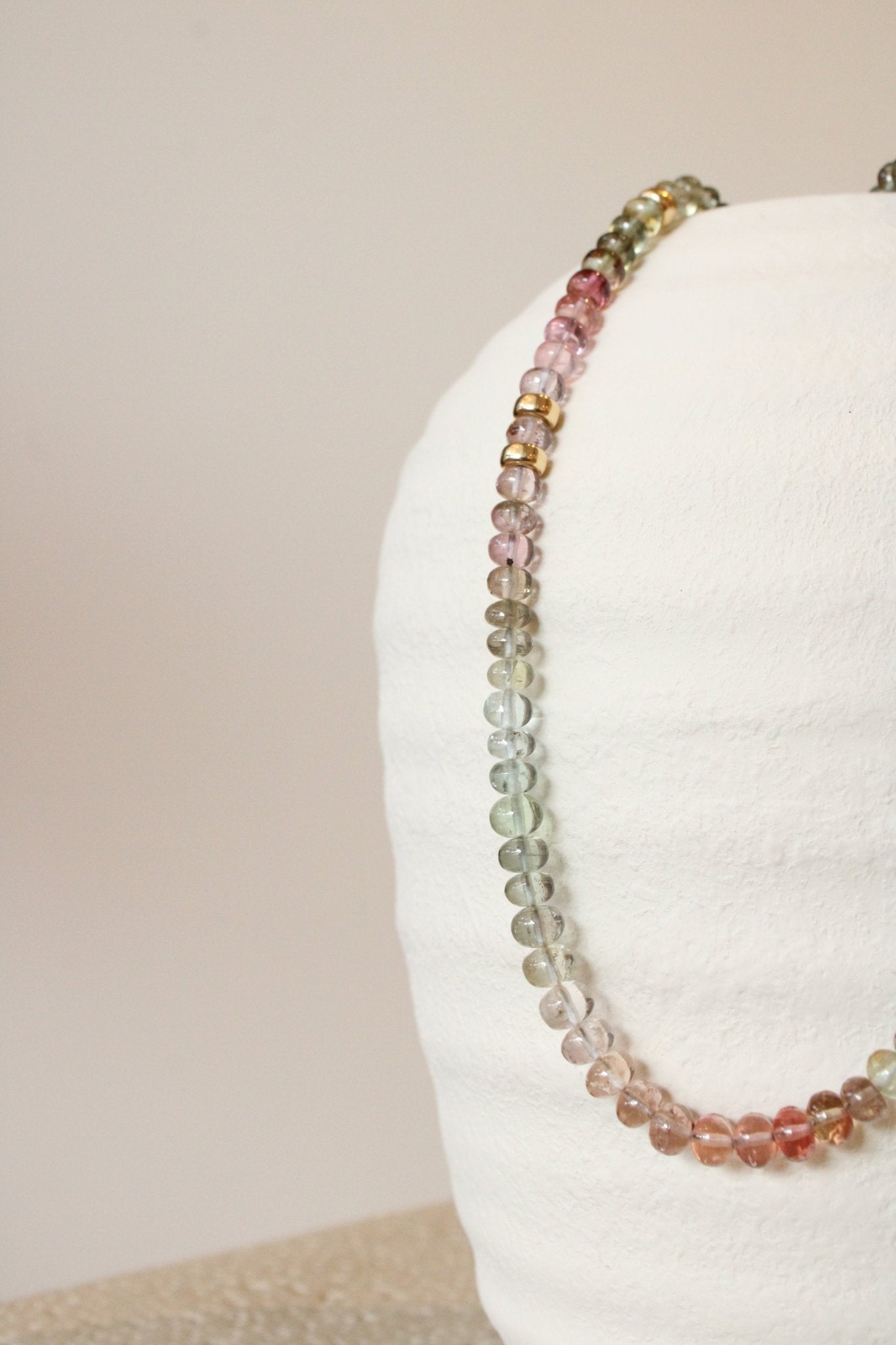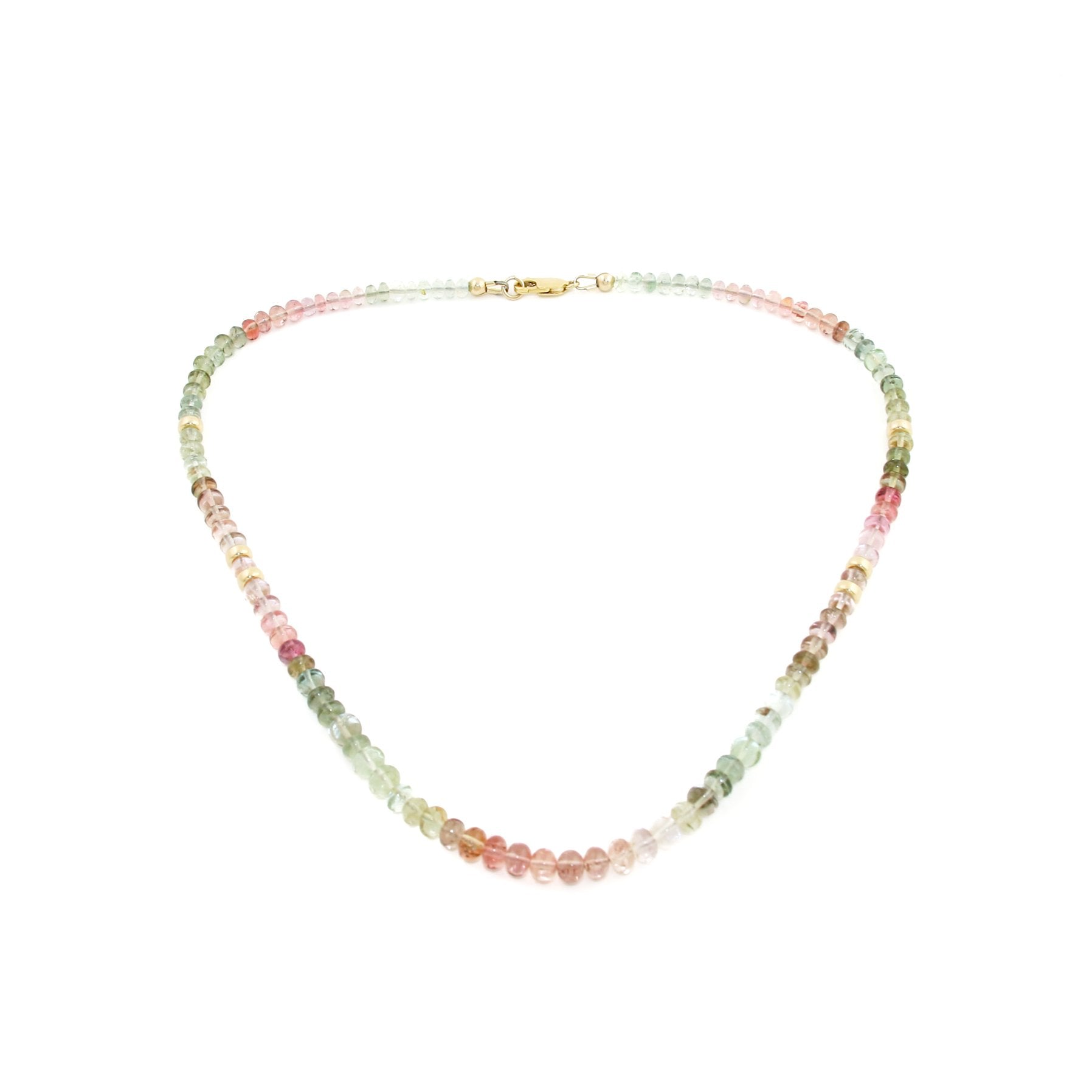 17" Wild Flora Smooth Tourmaline Gem Strand x 14K Gold Beads
