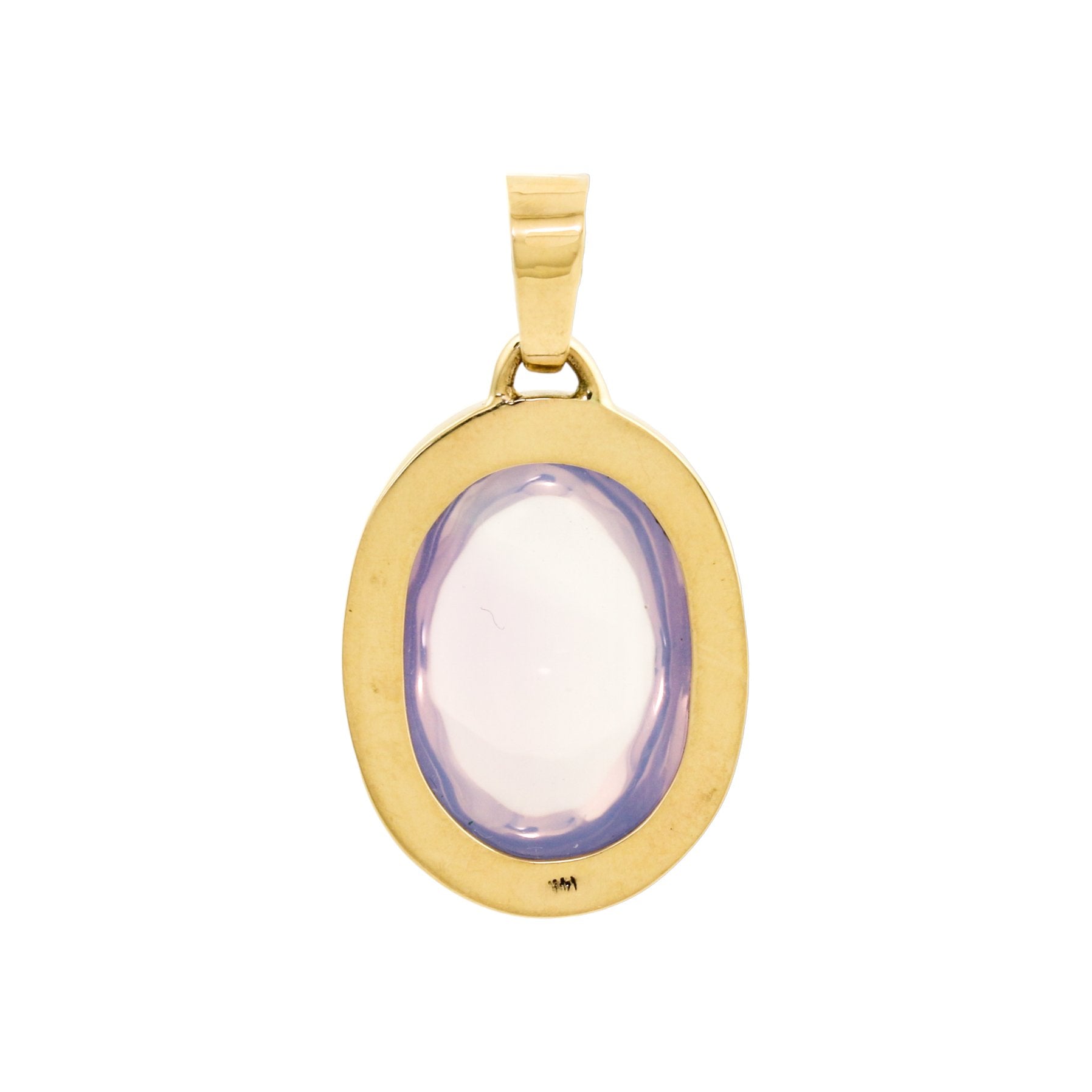Dreamy and ethereal, our lavender quartz pendant is a uniquely beautiful piece to add to your everyday stack. This gemmy stone is set with an open-back bezel, revealing the entirety of the stone and making it an eye-catching statement piece, fit to be worn out or on a daily occurrence.