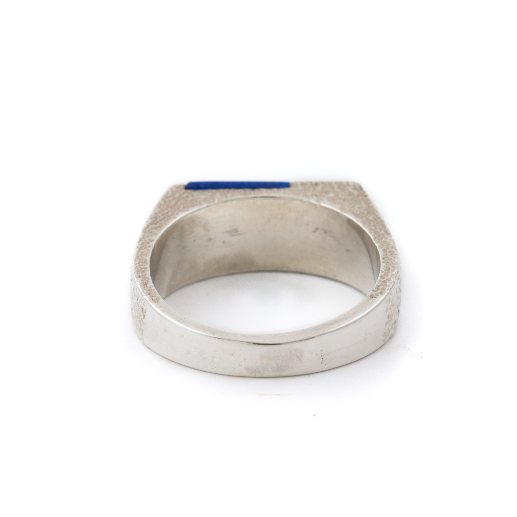 Silver x Sleek Lapis Lazuli Textured Rhombus Inlay Signet