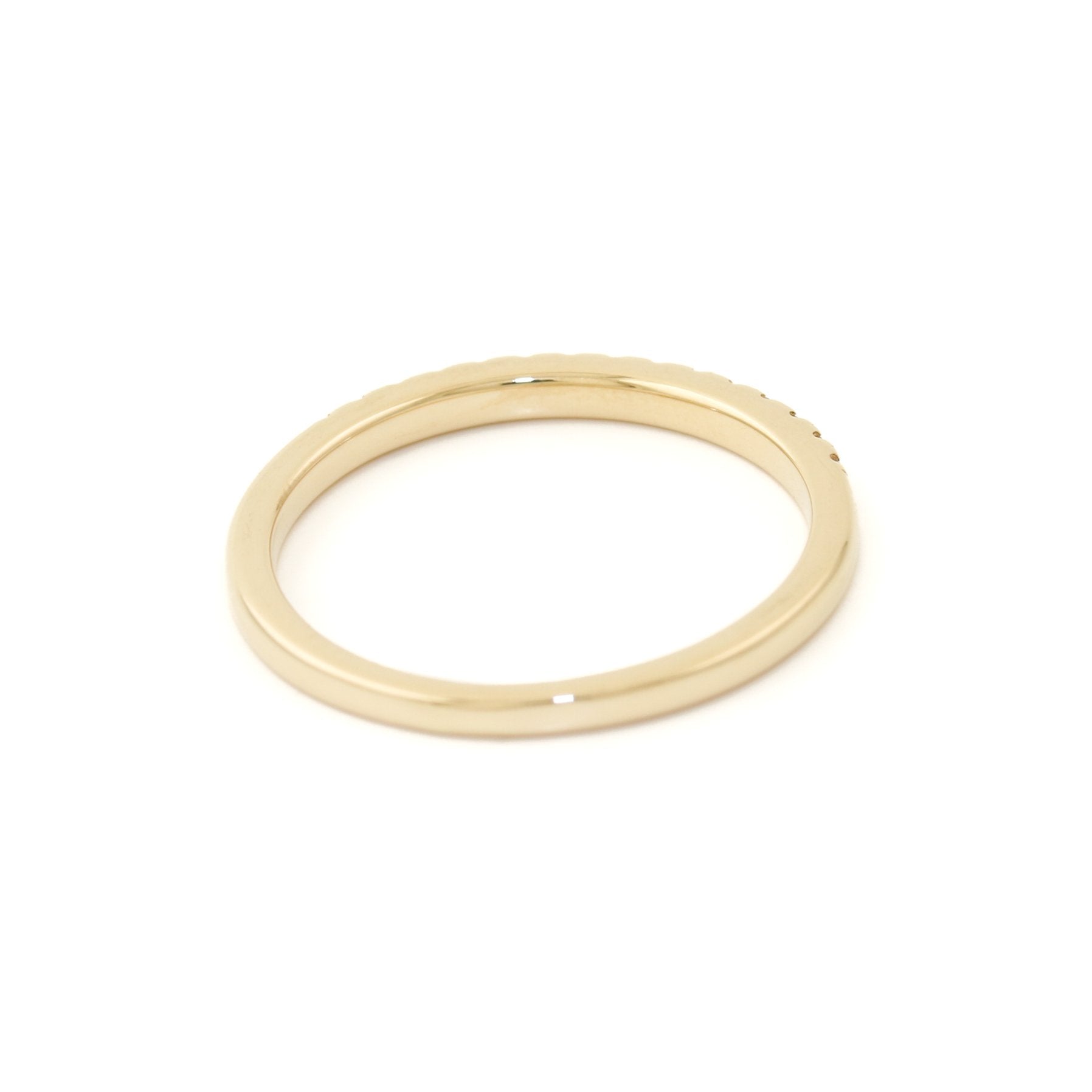 An elegant 14k gold eternity band adorned with a continuous row of pave-set lab-grown diamonds, each stone sparkling with precision and brilliance. The diamonds are nestled within a delicate channel, enhancing the ring’s sleek profile while showcasing their fire and clarity. The timeless design and shimmering diamonds make this band both versatile and sophisticated— perfect for a subtle touch of luxury, whether worn solo or stacked with other rings.