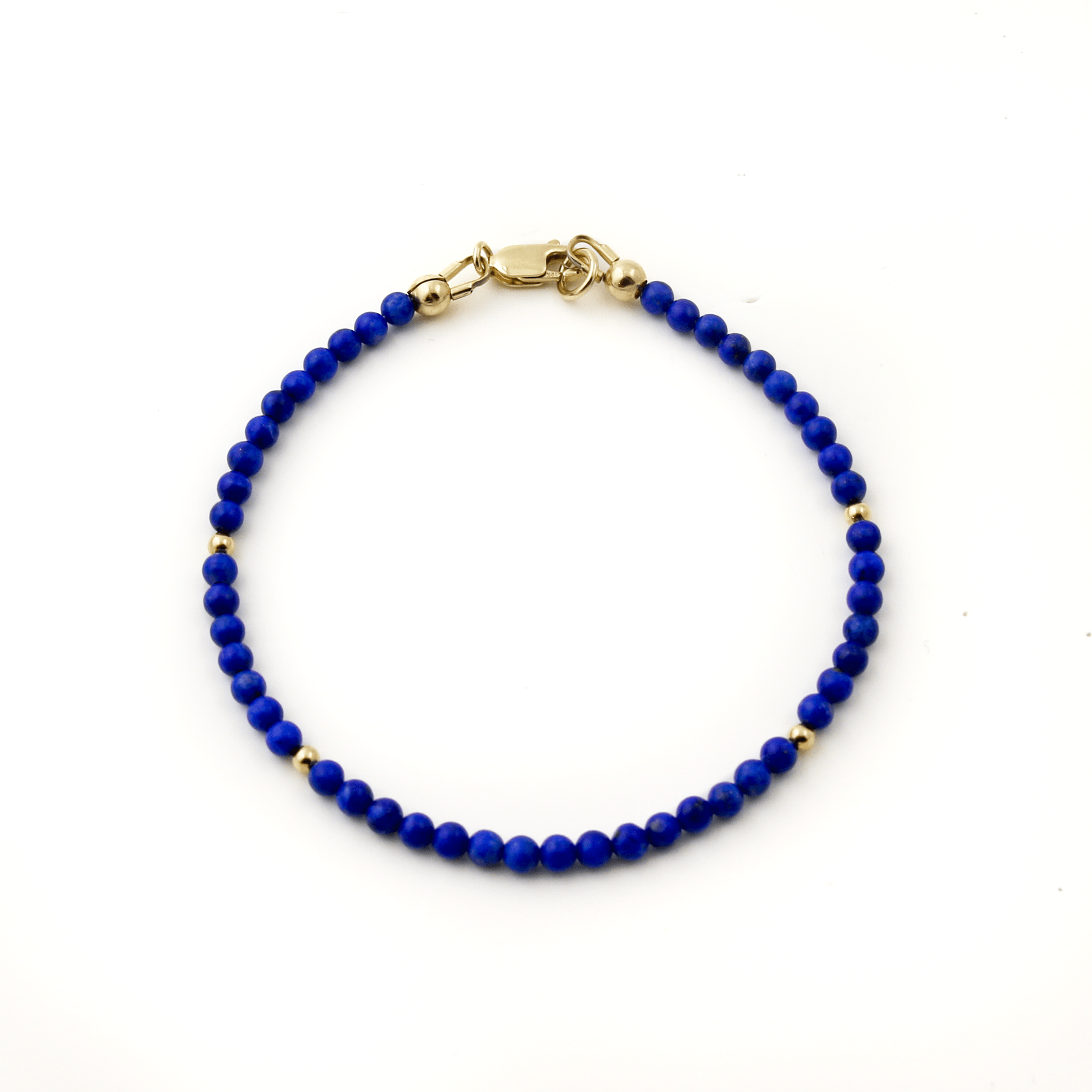 10k Gold Clasp x 3mm Round Lapis & 14k Beaded Bracelet