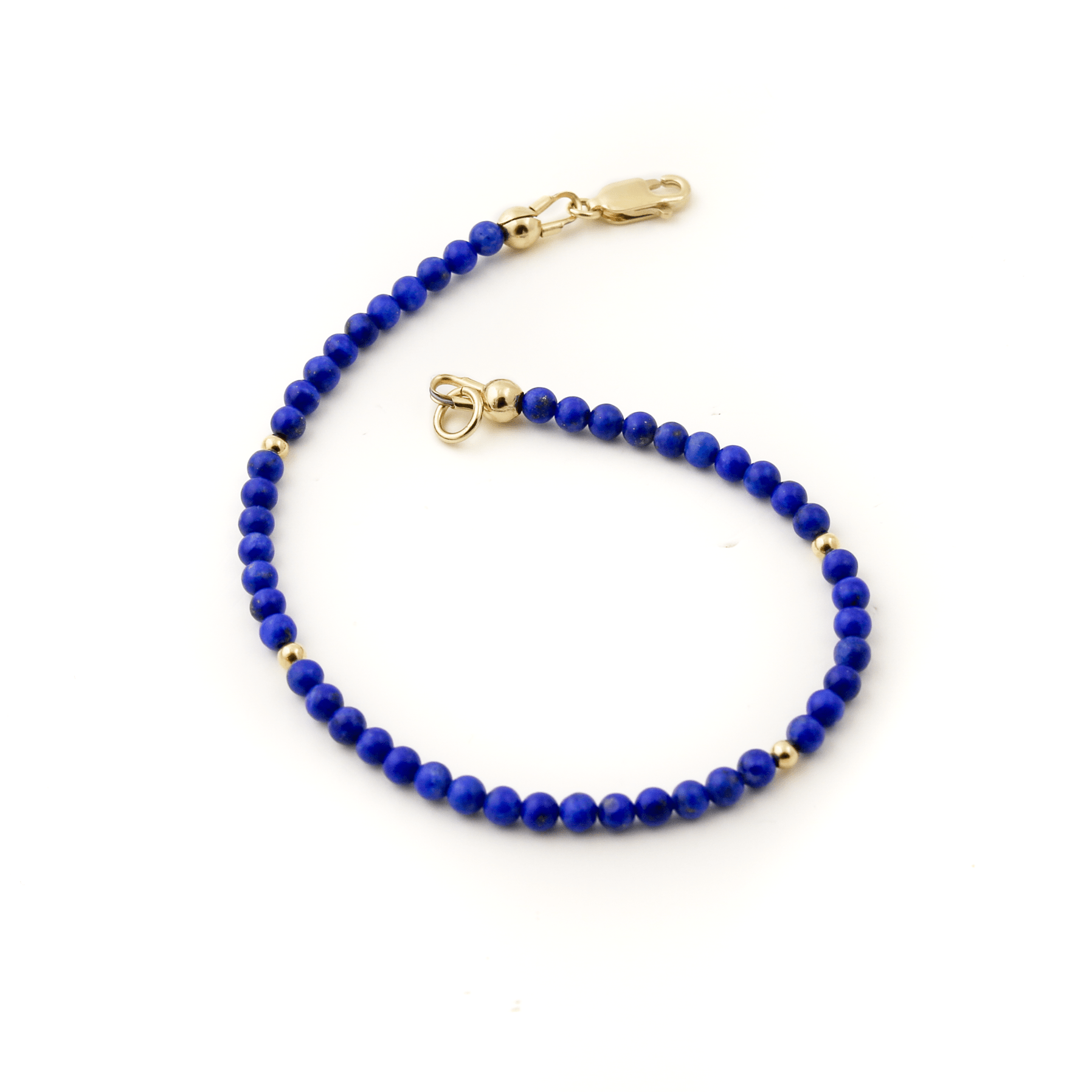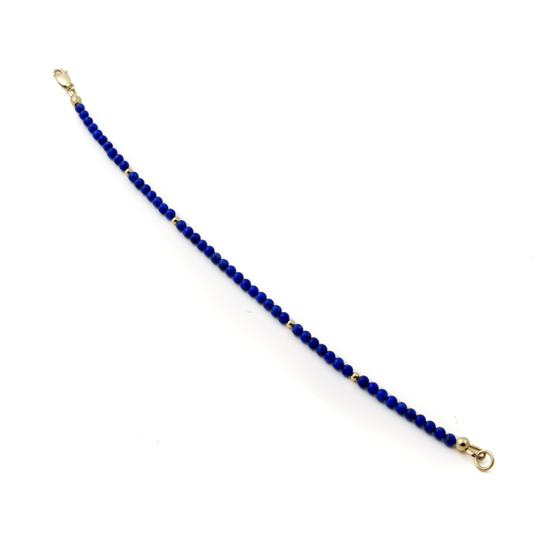 10k Gold Clasp x 3mm Round Lapis & 14k Gold Barrel Beaded Bracelet