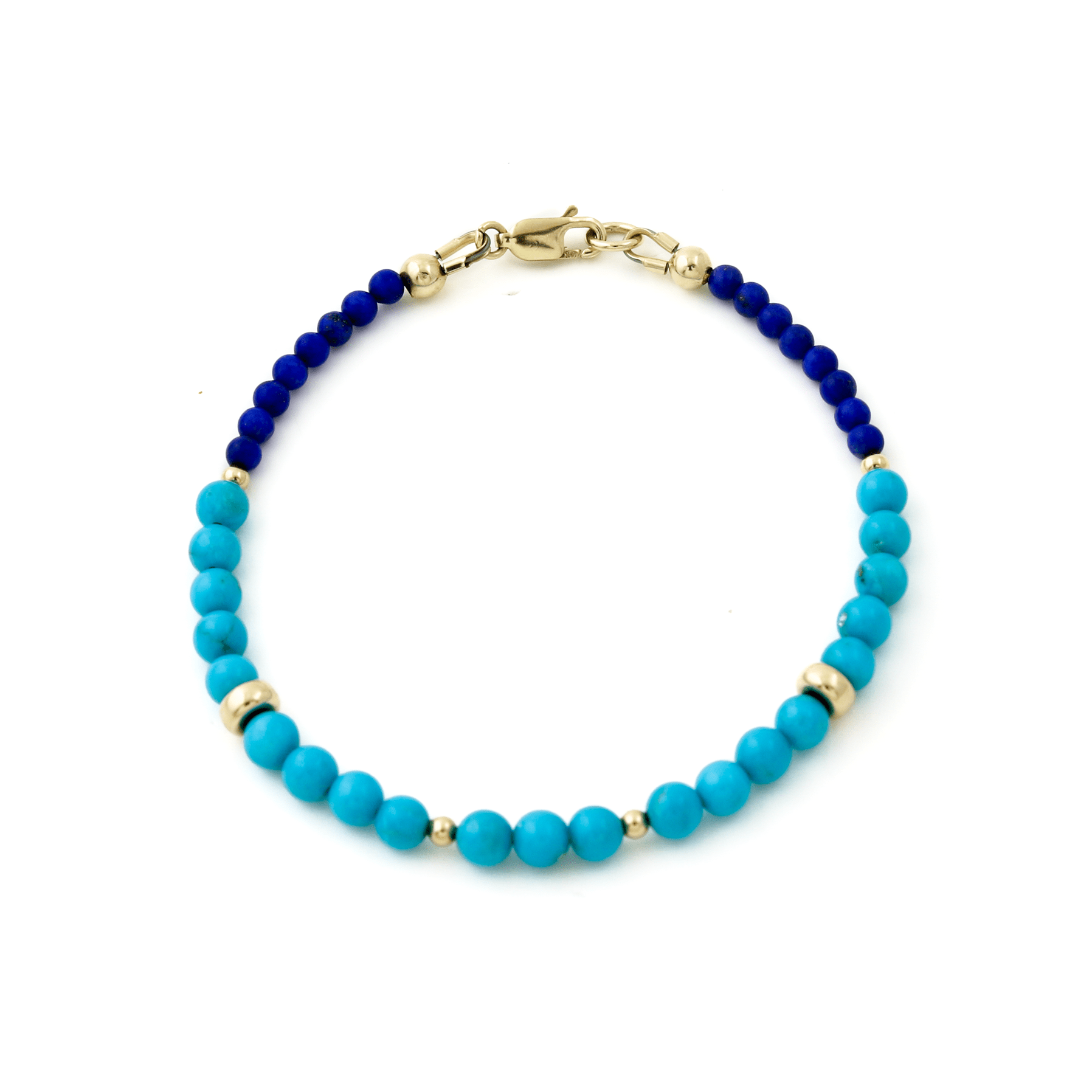 10k Gold Clasp x Mixed Round Turquoise & Lapis Beaded Bracelet