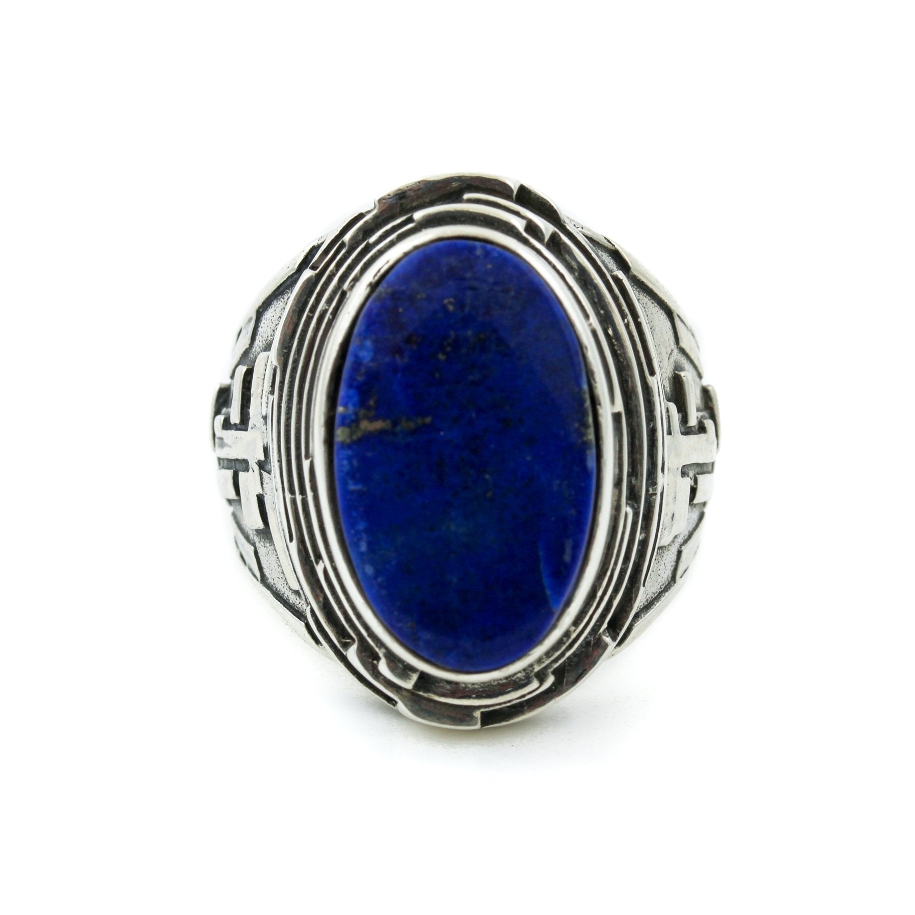 This unique space-age ring was inspired by the Art Deco movement that took the 1920s by storm. This ring features a stunning blue Lapis stone at it's heart, set in lightweight sterling silver. This is a large ring that would sit comfortably on it's own, and would make a great statement piece.