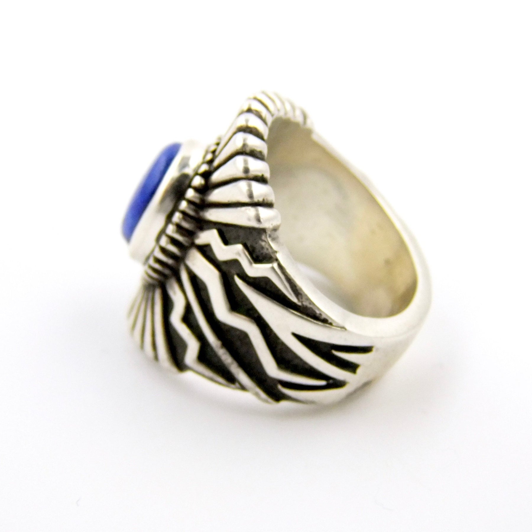 A bold original by Kingdom Jewelry is the 'Sonoran Sunrise' ring. Inspired by our love of the southwest this badass beauty represents everything we know and love. With a strong deco influence and deeply etched leading lines, this heavy silver ring is reminiscent of 1970's Santa Fe.