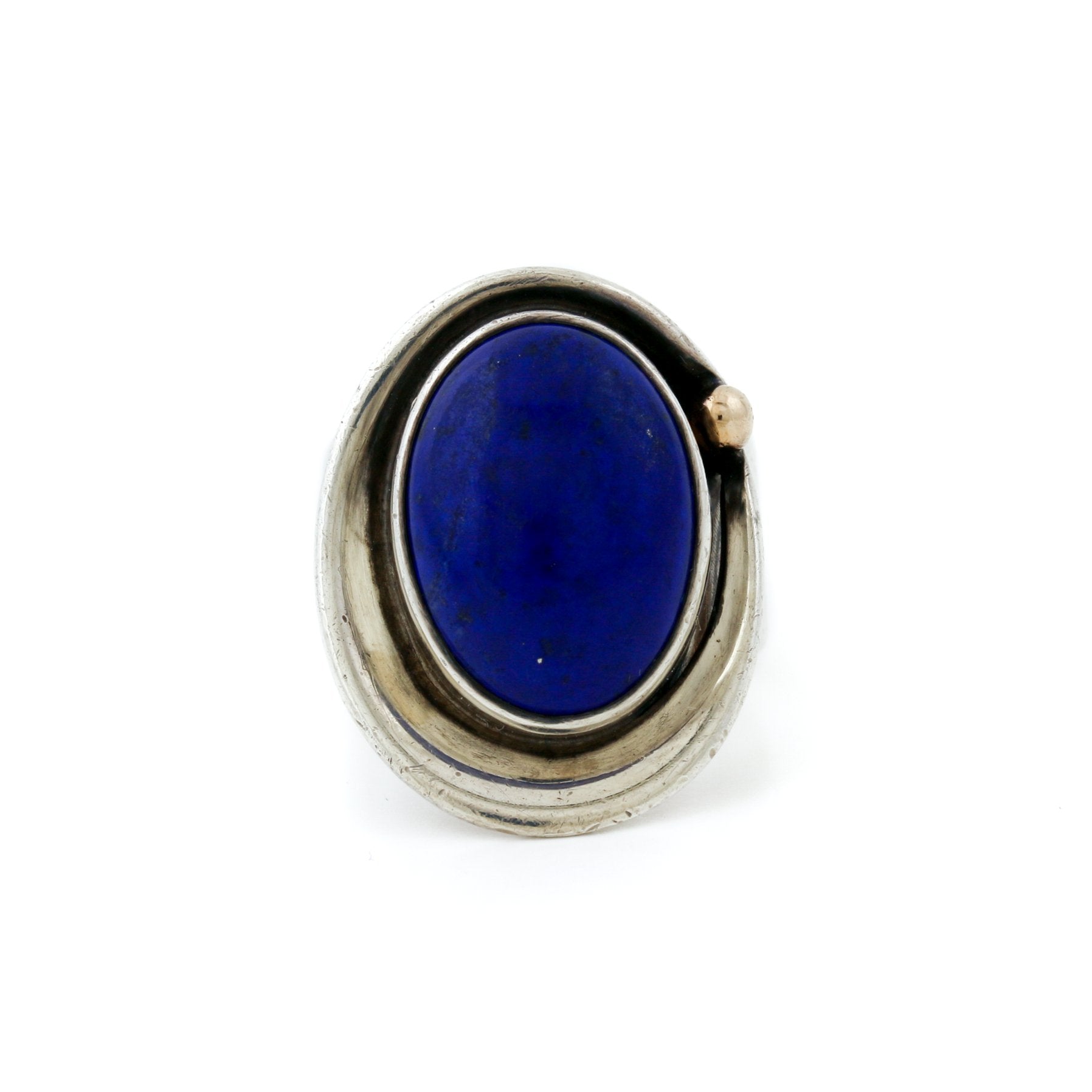 Silver Two-Toned x Vintage Bezel-Set Oval Lapis Ring