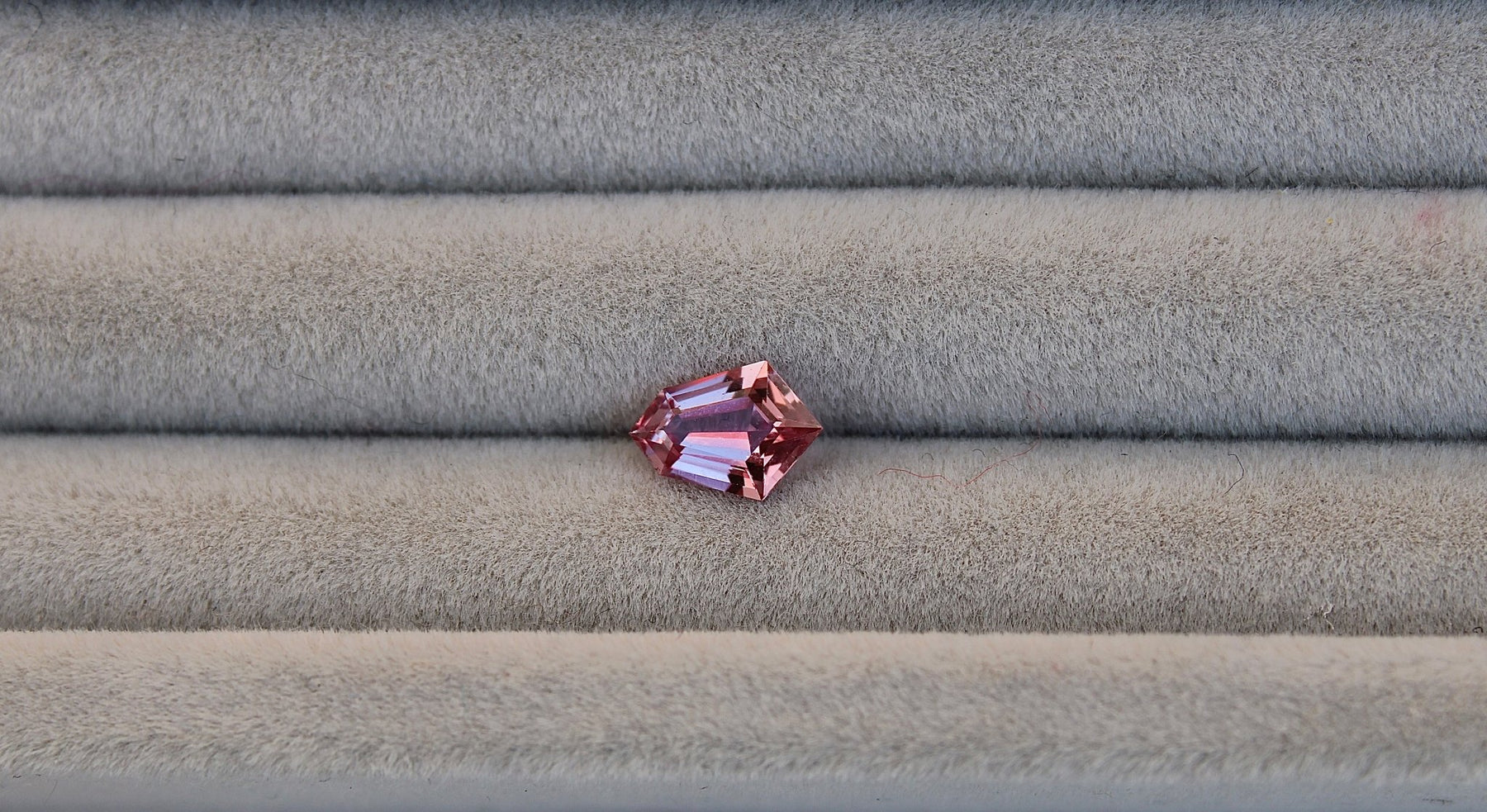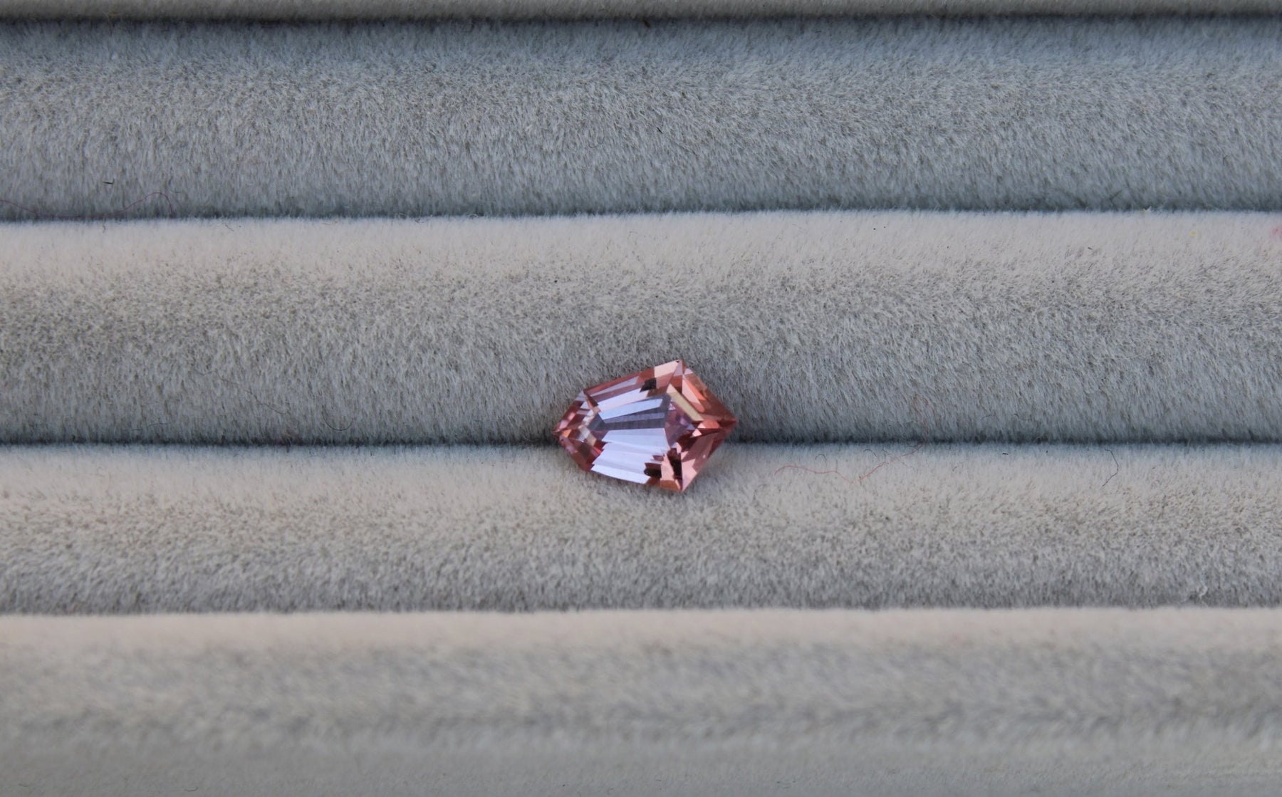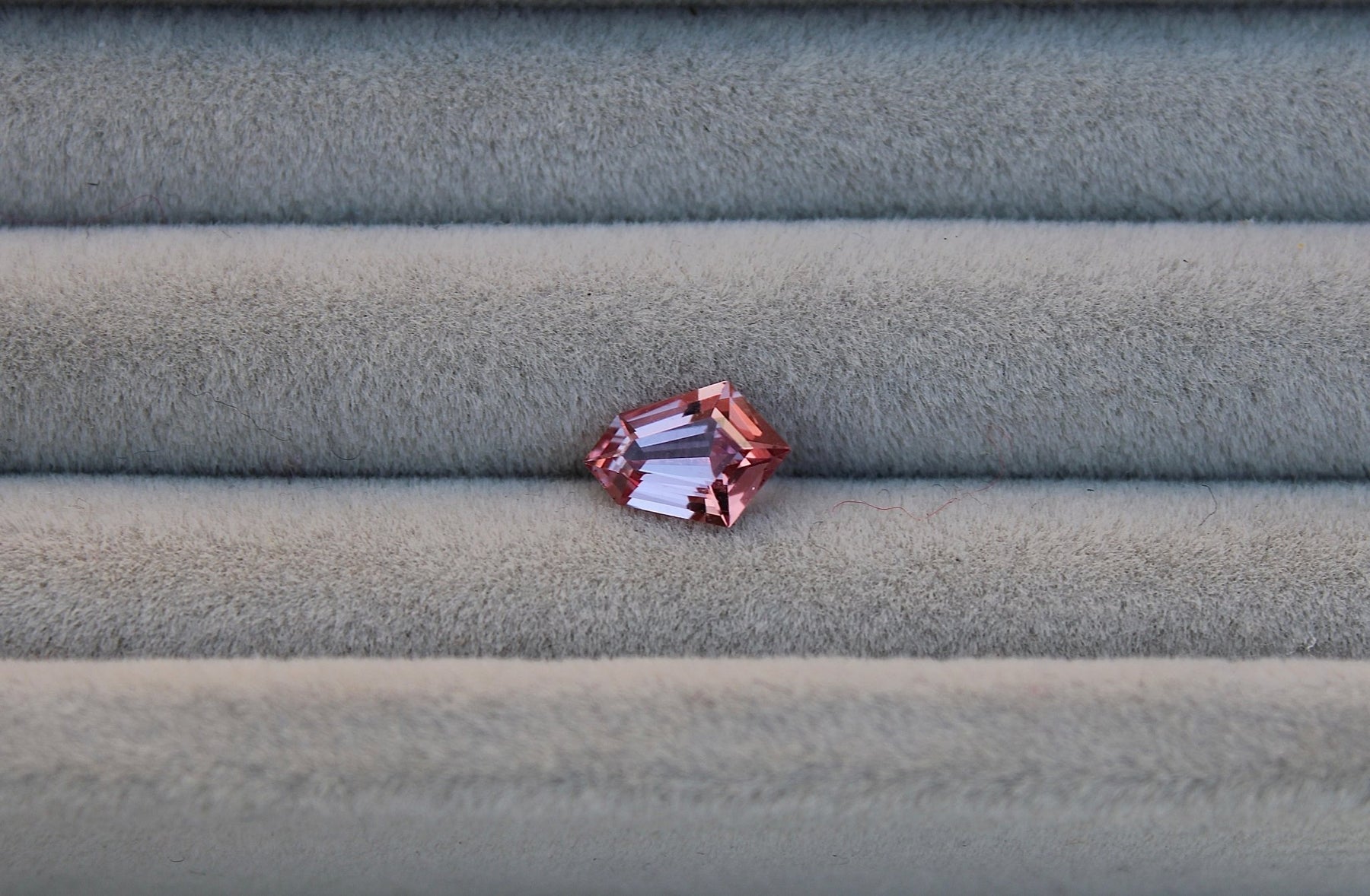 Discover the allure of this utterly exquisite 0.71ct geometric sapphire, perfect for becoming the centrepiece of your dream jewelry. Its mesmerizing facets capture rich peach and pink tones, making it an exceptional and unique gemstone.