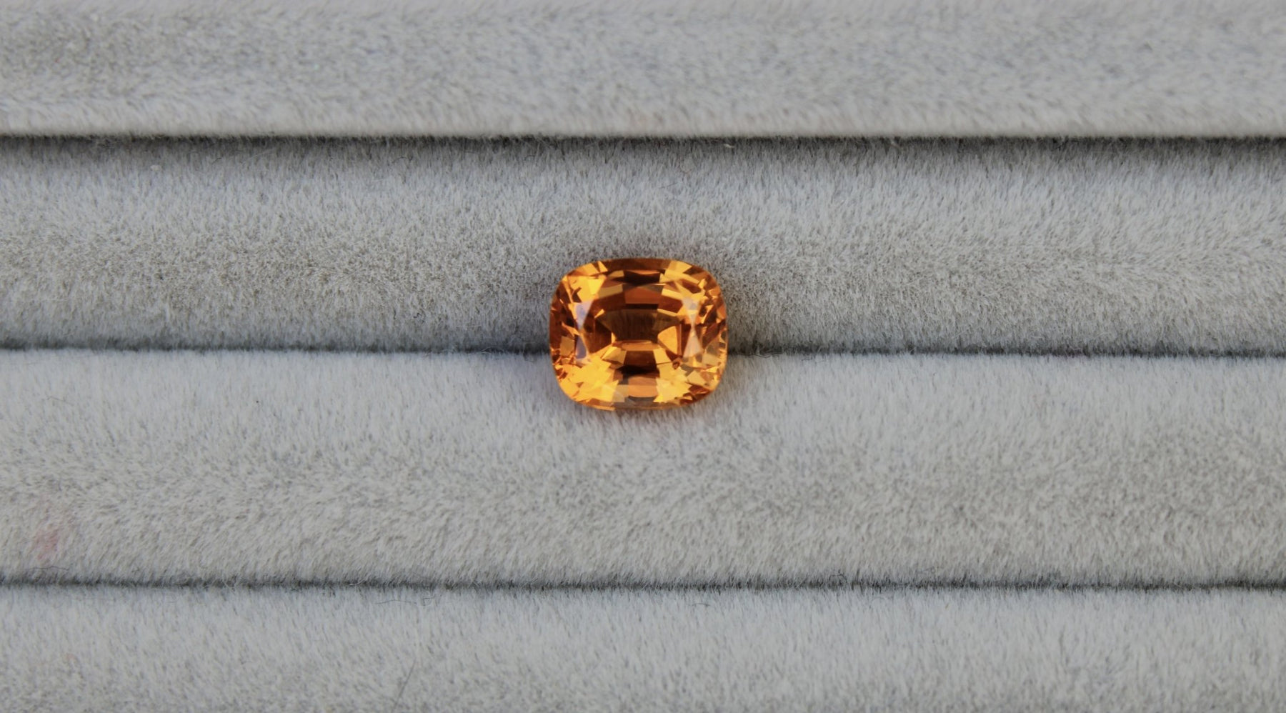Create the jewelry piece of your dreams with this exquisite 1.60-carat cushion-cut mandarin garnet. Radiating a fiery orange hue, this stunning gemstone dazzles with vibrant brilliance in every facet, making it truly one-of-a-kind.