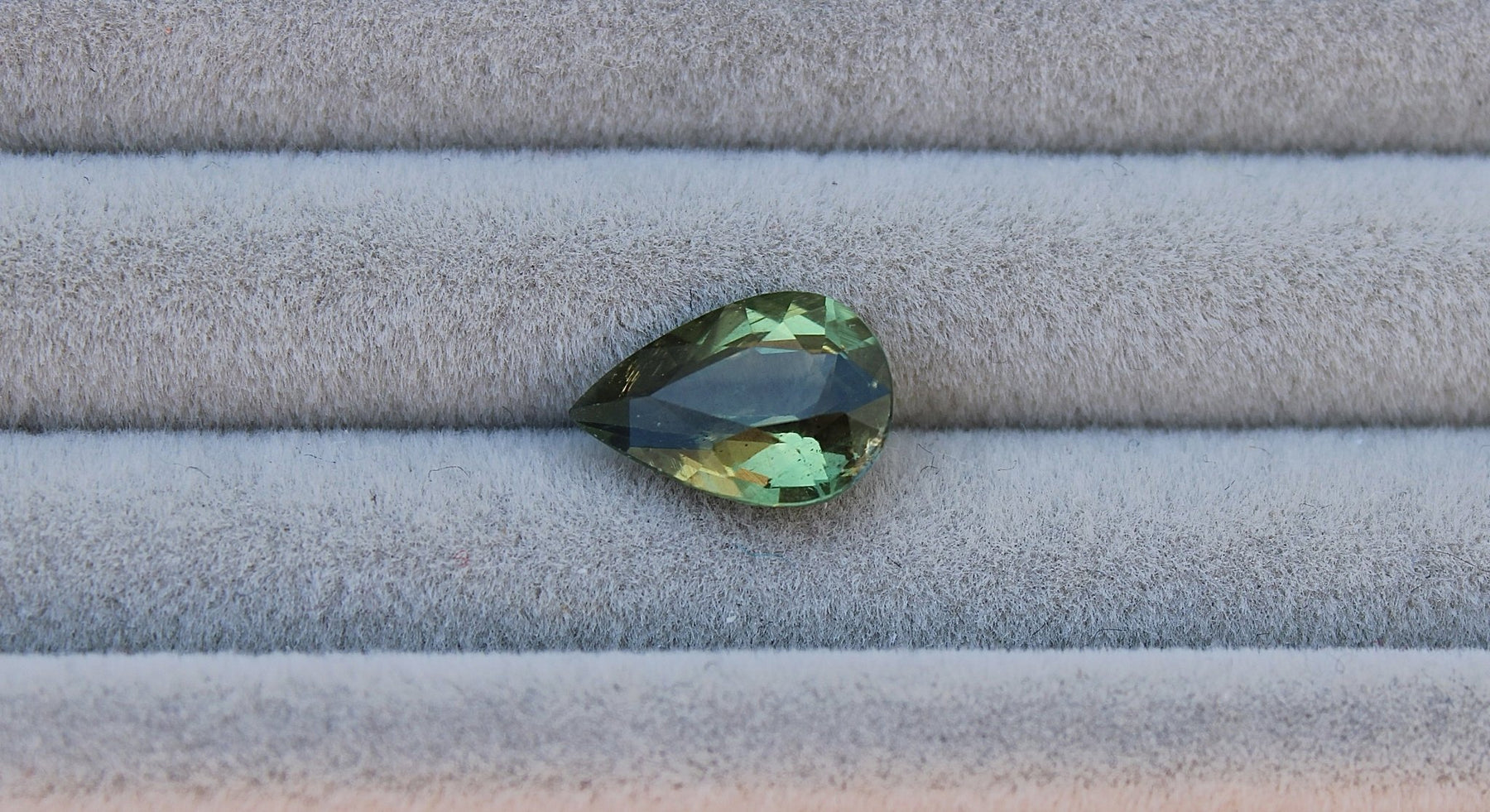 Create the ring of your dreams with this 2.21ct pear-shaped deep green sapphire. This utterly stunning gemstone catches an array of forest tones within its facets, making it a truly one-of-a-kind gemstone.