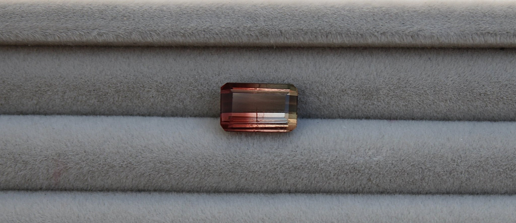 Create the jewelry piece of your dreams with this 2.36ct Brazilian bi-colour tourmaline. This utterly stunning gemstone catches deep mauve tones alongside pale champagne within its facets, making it a truly one-of-a-kind gemstone.