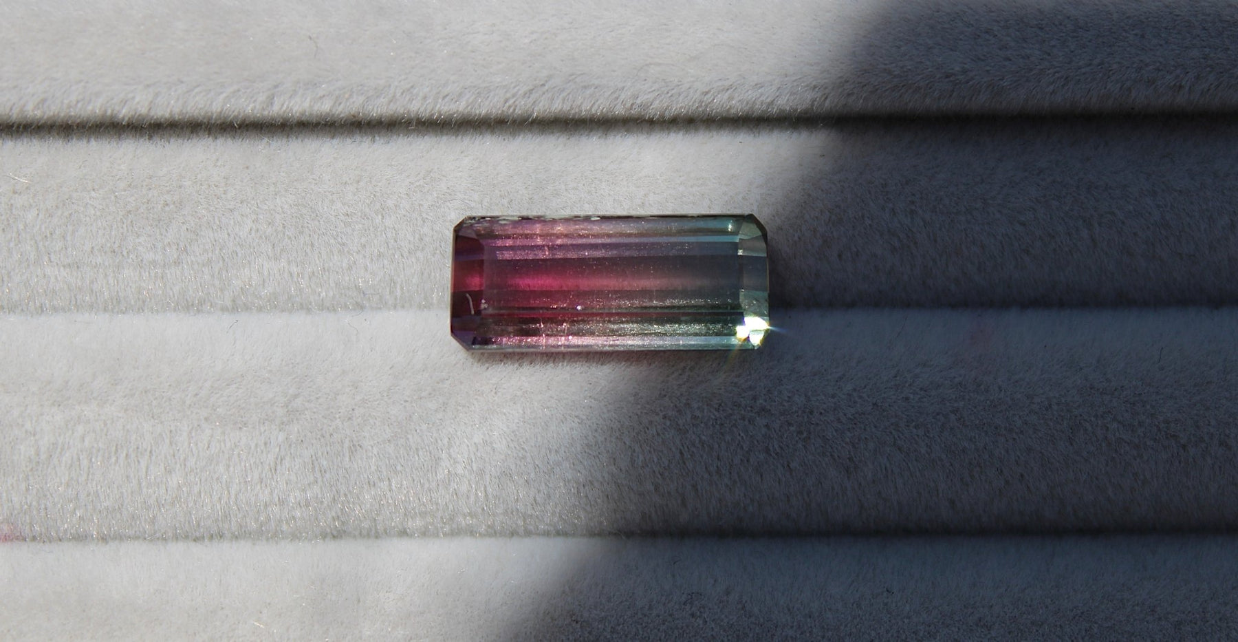 Create the jewelry piece of your dreams with this 3.34ct Brazilian elongated bi-colour tourmaline. This utterly stunning gemstone catches deep mauve tones alongside rich forest greens within its facets, making it a truly one-of-a-kind gemstone.