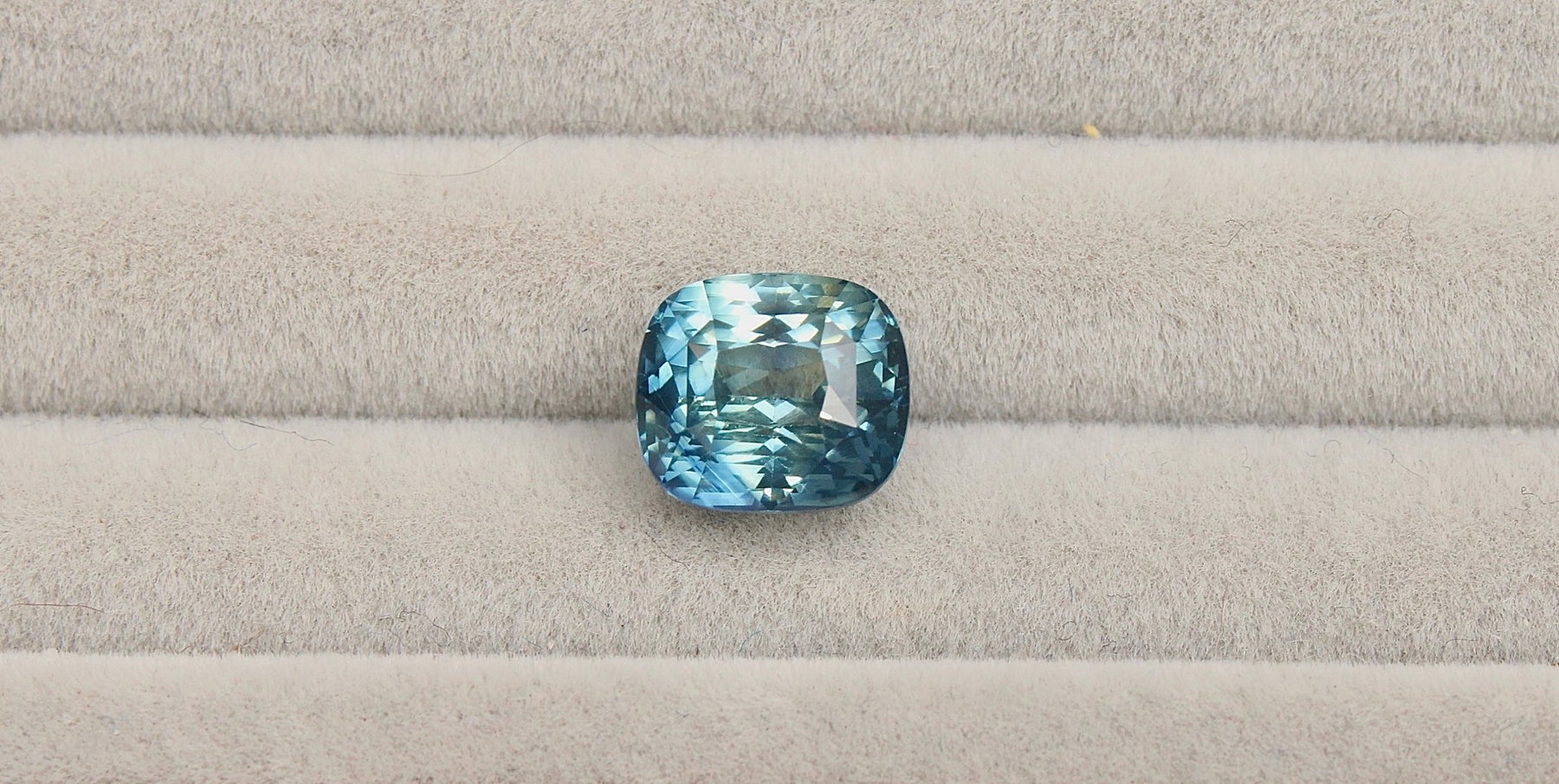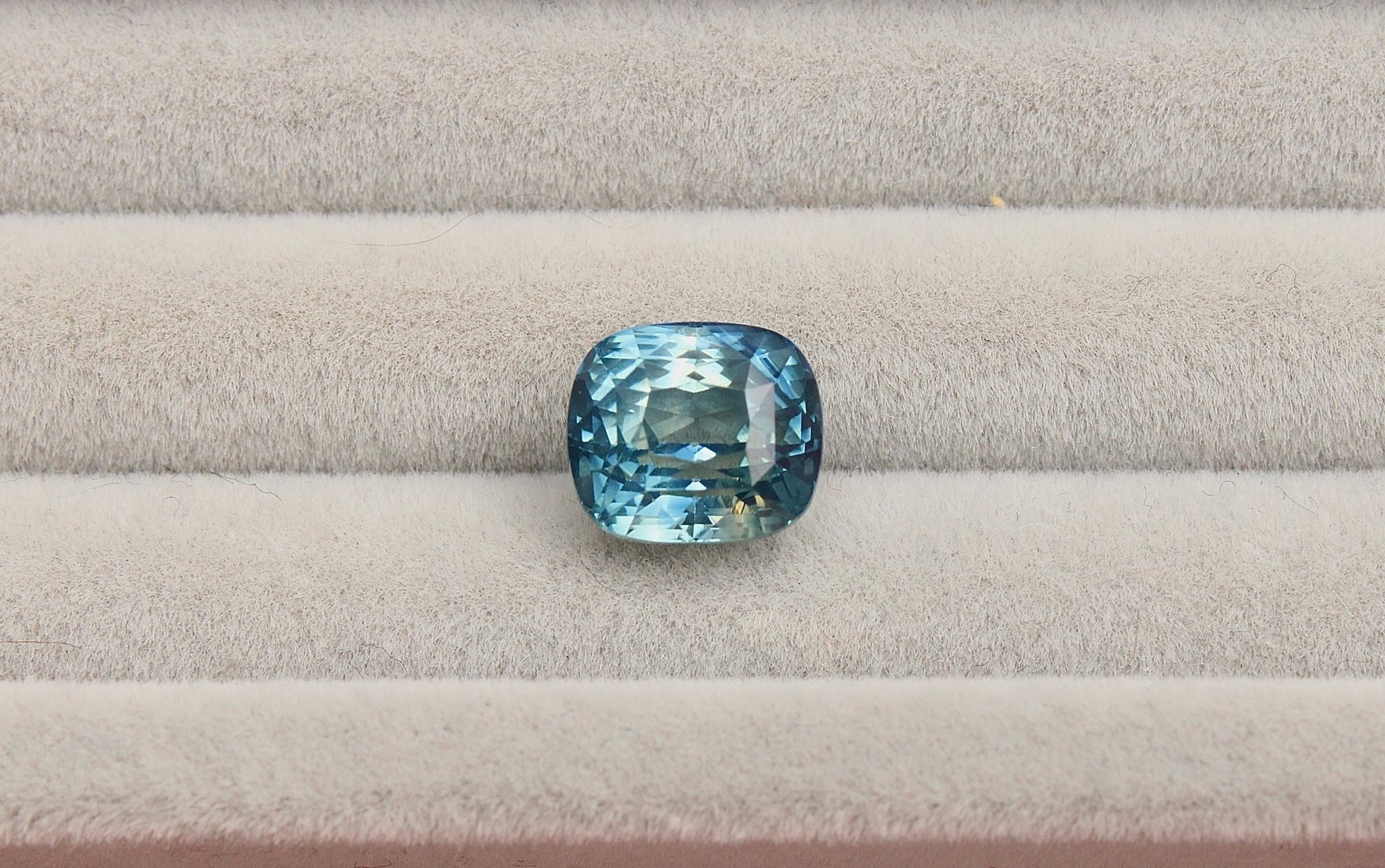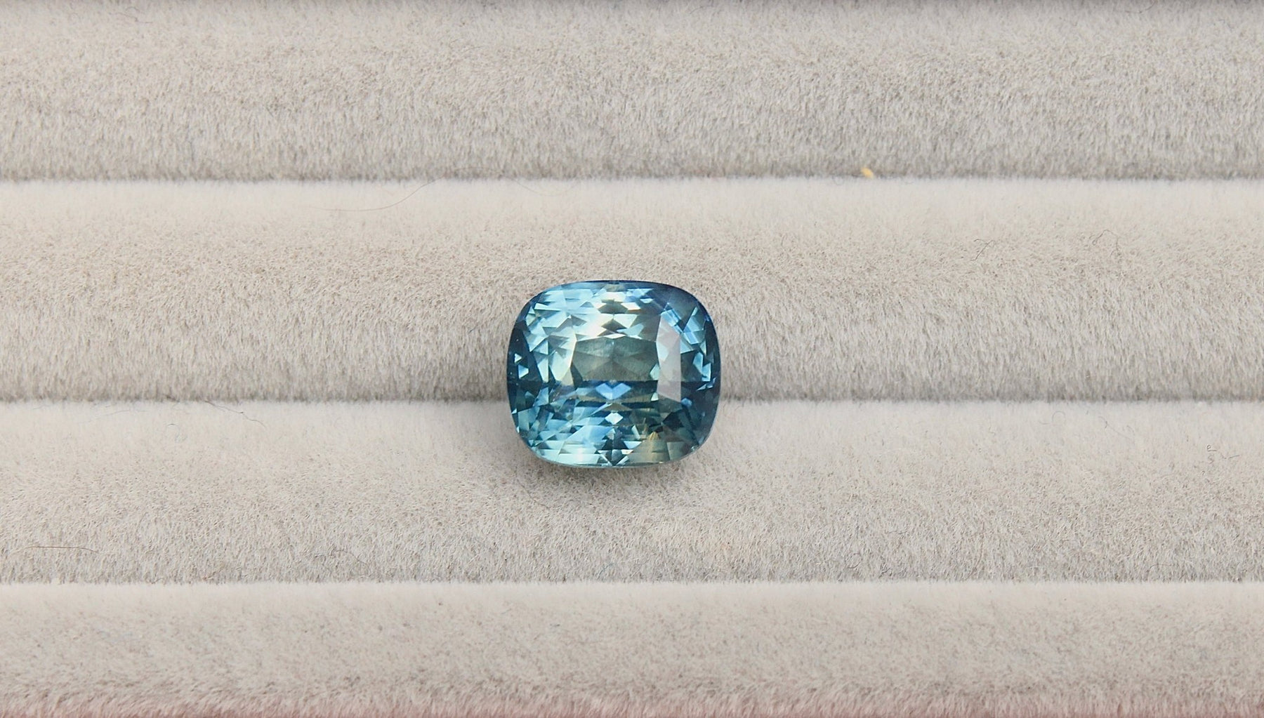 Discover the allure of this utterly exquisite 3.61ct cushion-cut sapphire, perfect for becoming the centrepiece of your dream jewelry. Its mesmerizing facets capture a spectrum of deep aqua tones, making it an exceptional and unique gemstone.