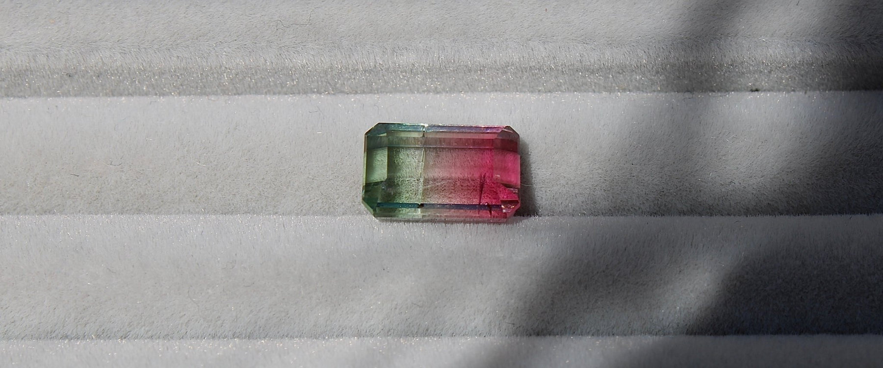 Create the jewelry piece of your dreams with this 3.63ct Brazilian bi-colour tourmaline. This utterly stunning gemstone catches deep mauve tones alongside rich forest greens within its facets, making it a truly one-of-a-kind gemstone.