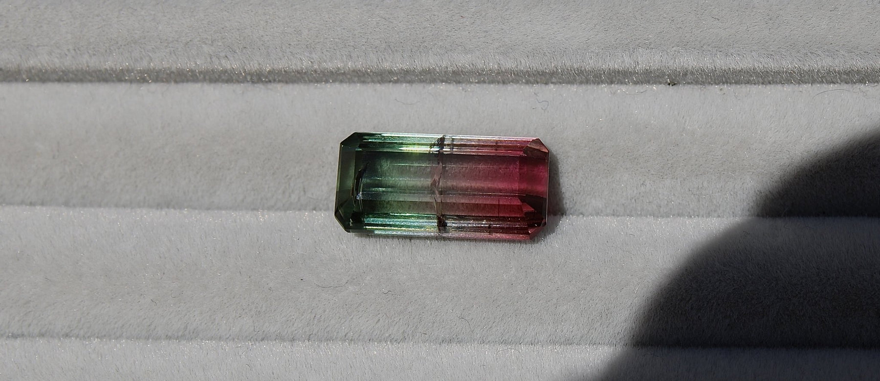 Create the jewelry piece of your dreams with this 6.06ct Brazilian bi-colour tourmaline. This utterly stunning gemstone catches deep mauve tones alongside rich forest greens within its facets, making it a truly one-of-a-kind gemstone.