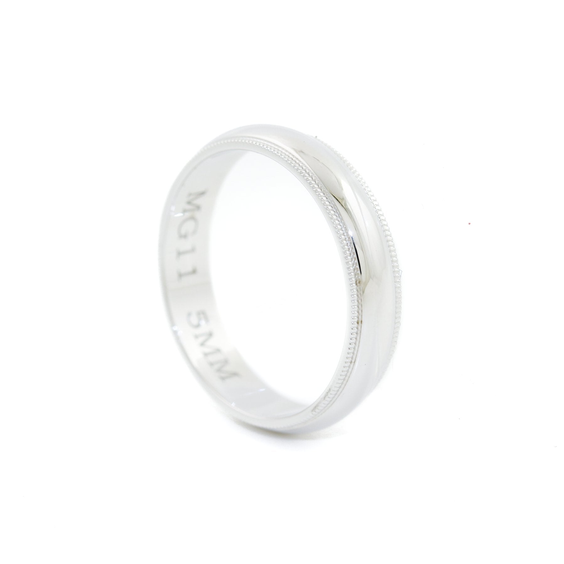Made to order, this half-round light band can be crafted from your choice of 14k or 18k solid white gold. This band is designed to lay flat against the finger while gently doming away, ensuring a comfortable fit for everyday wear. The finely detailed rope design that accents the band's edges adds a distinctive touch to its minimalist design, making it simple and timeless. Whether for personal wear or as a thoughtful gift for your significant other, this band will surely become an everyday staple, symbolizing enduring love and commitment.