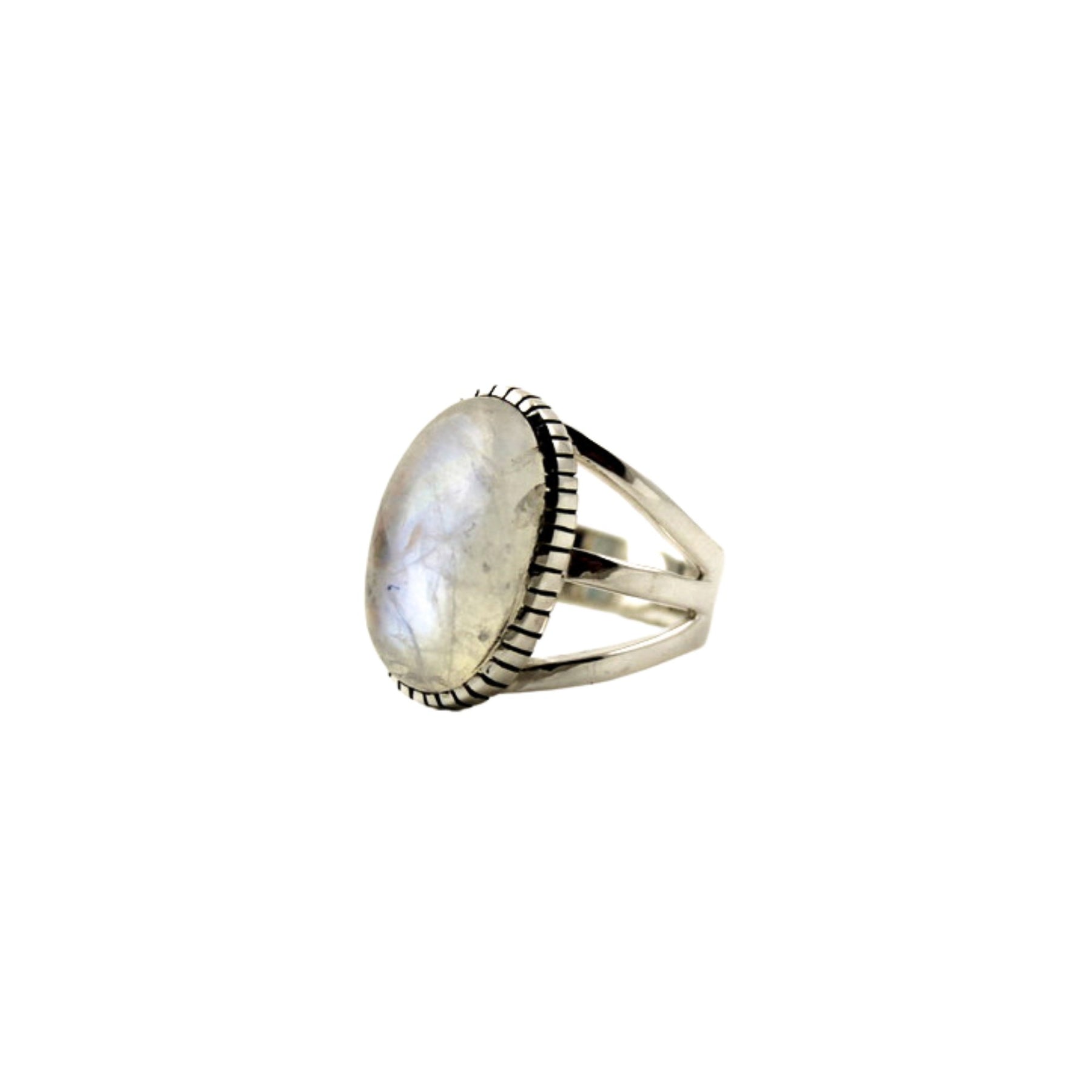 This beautiful and modern moonstone ring would look incredible stacked with your favourite rings or be worn as a stand alone piece. Made by Kingdom Jewelry, the split shank design creates an attractive and comfortable fit making it excellent for everyday wear. Perfect for any occasion.