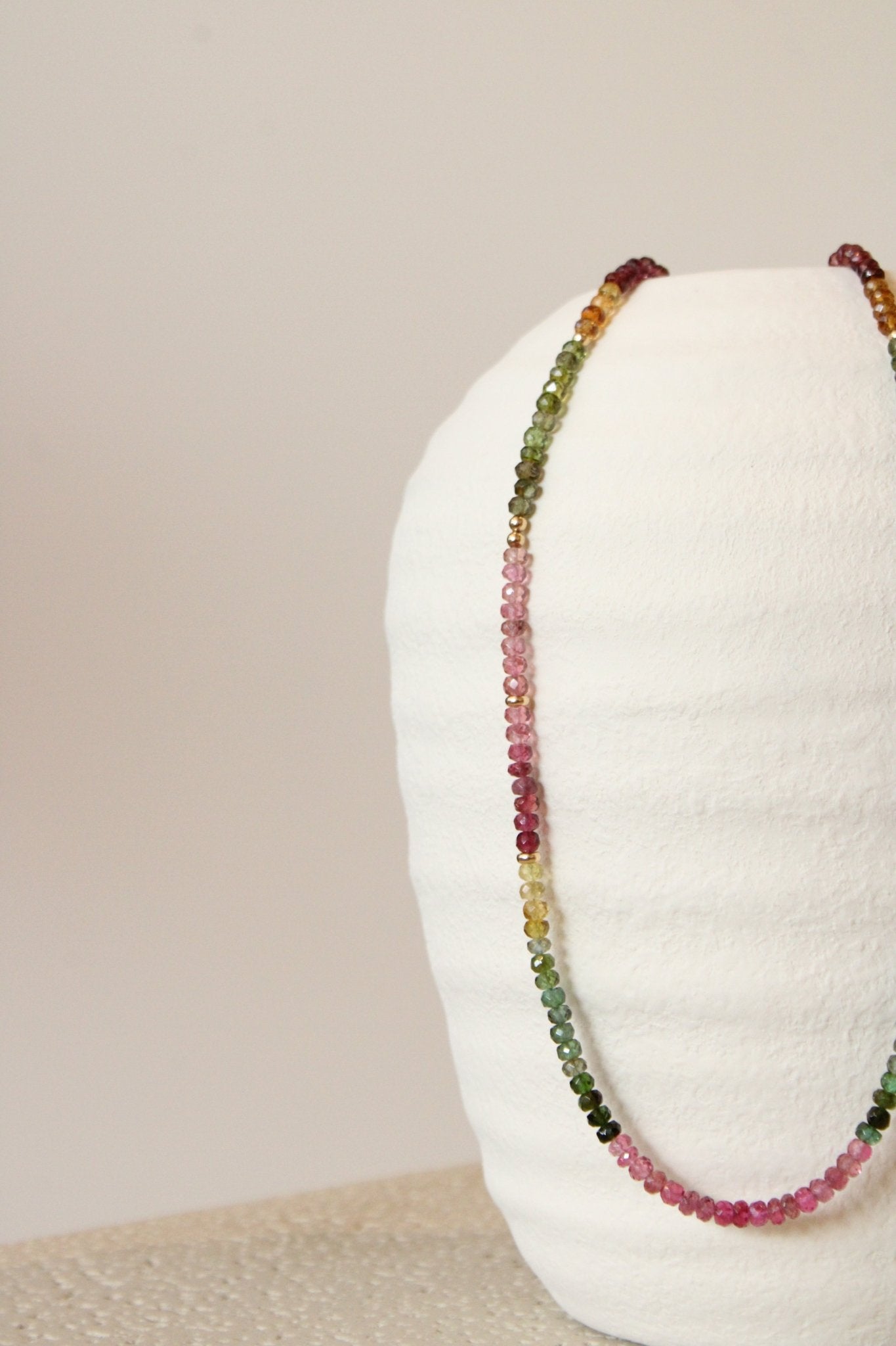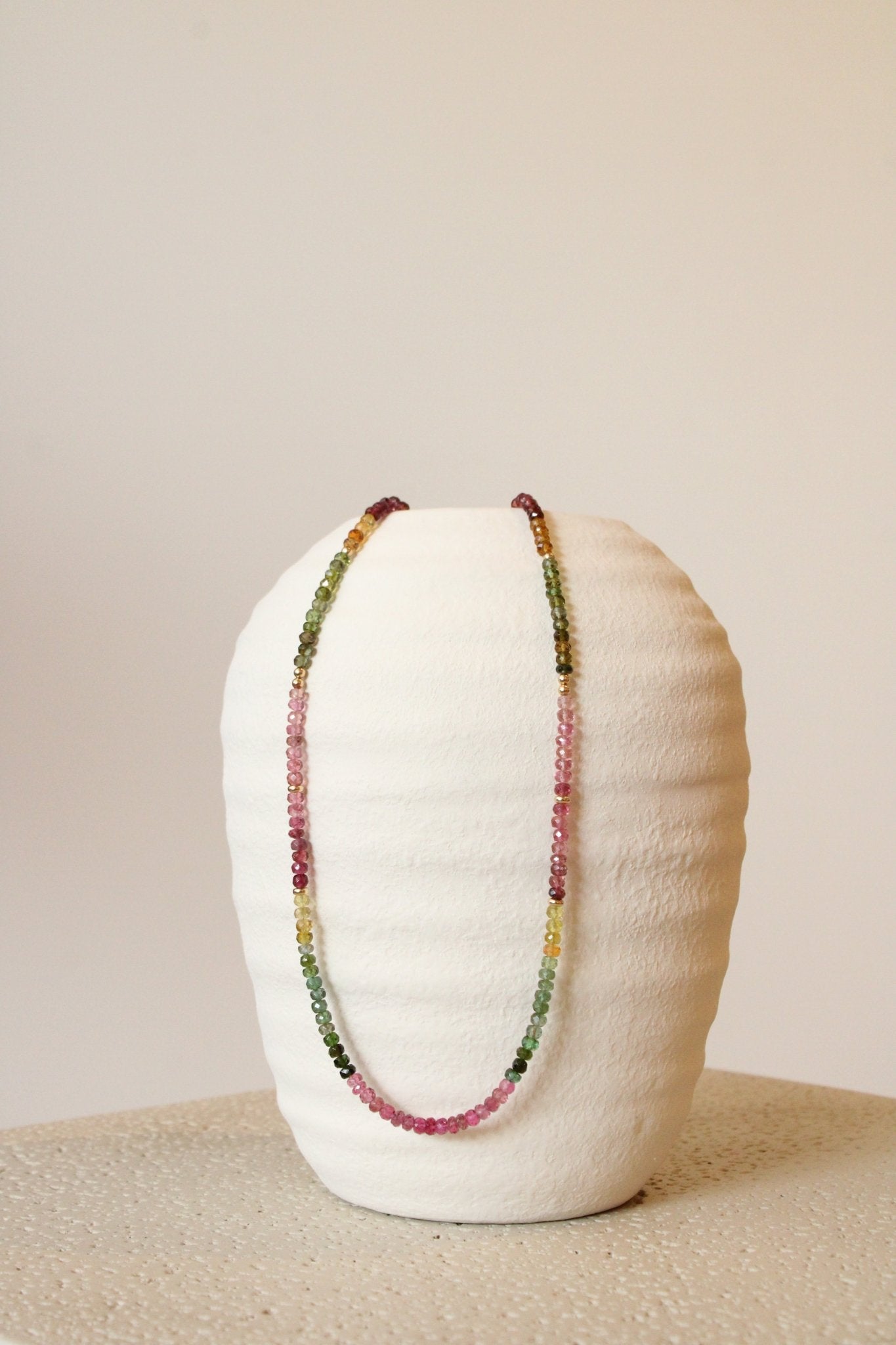 20" Faceted Watermelon Tourmaline Gem Strand x 14K Gold Beads