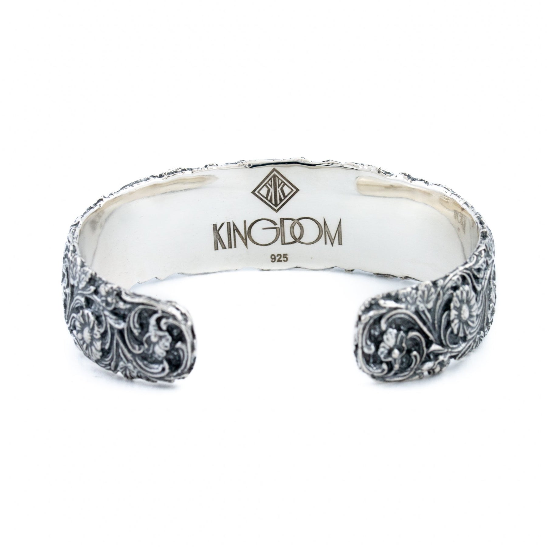 This piece features beautiful detailed floral work across the length of the cuff all set in solid sterling silver. A cuff that is made with phenomenal detail and precision that would look killer beside any of your favourite pieces! A cuff like this will definitely make for an alluring companion.