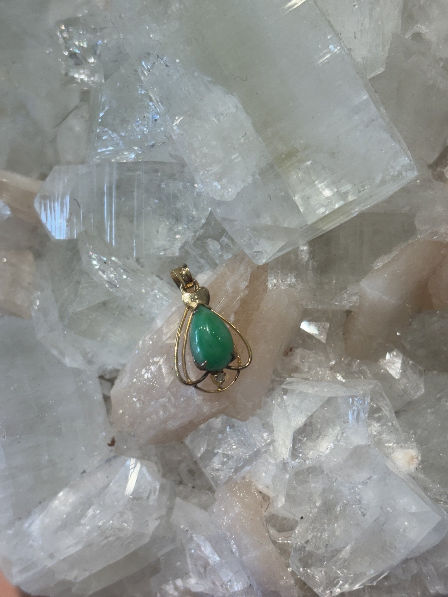 14k Gold x Vintage Teardrop Jade & Diamond Spade Pendant