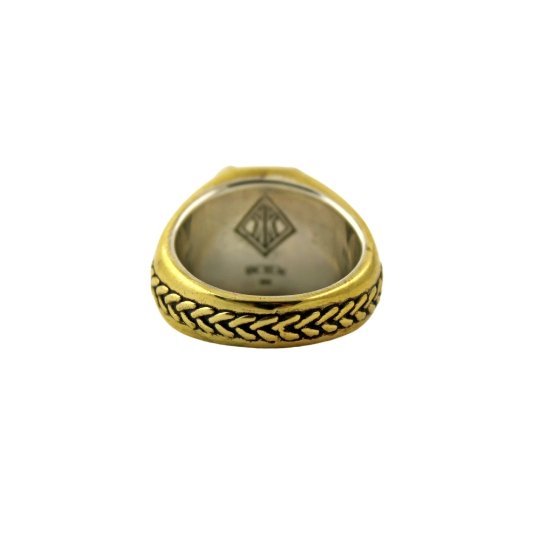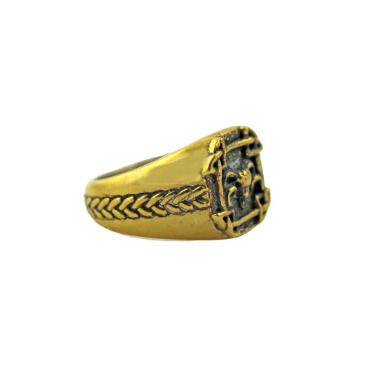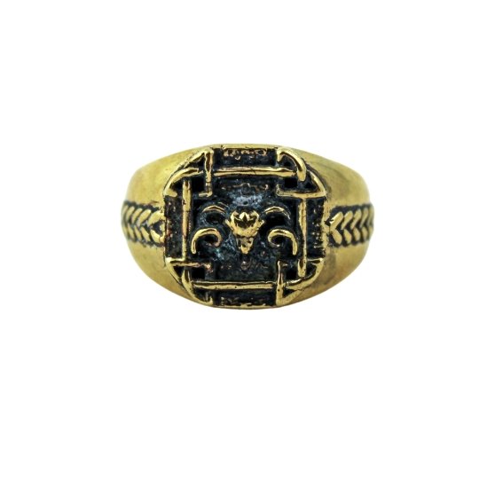 This would look amazing paired up with some turquoise and a great addition to a fist full of mixed metals. It's a badass beauty with a killer celtic ram in a signet style ring with some extra detailing.