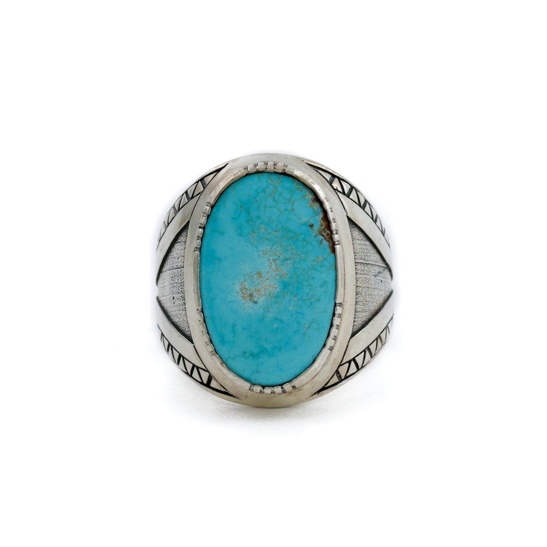 This contemporary "Lambda" geometric ring by Kingdom is truly something special. The subtle Kingman turquoise ring is a statement ring that would look killer paired with any of your other favorite gems or works perfectly as a stand-alone piece!