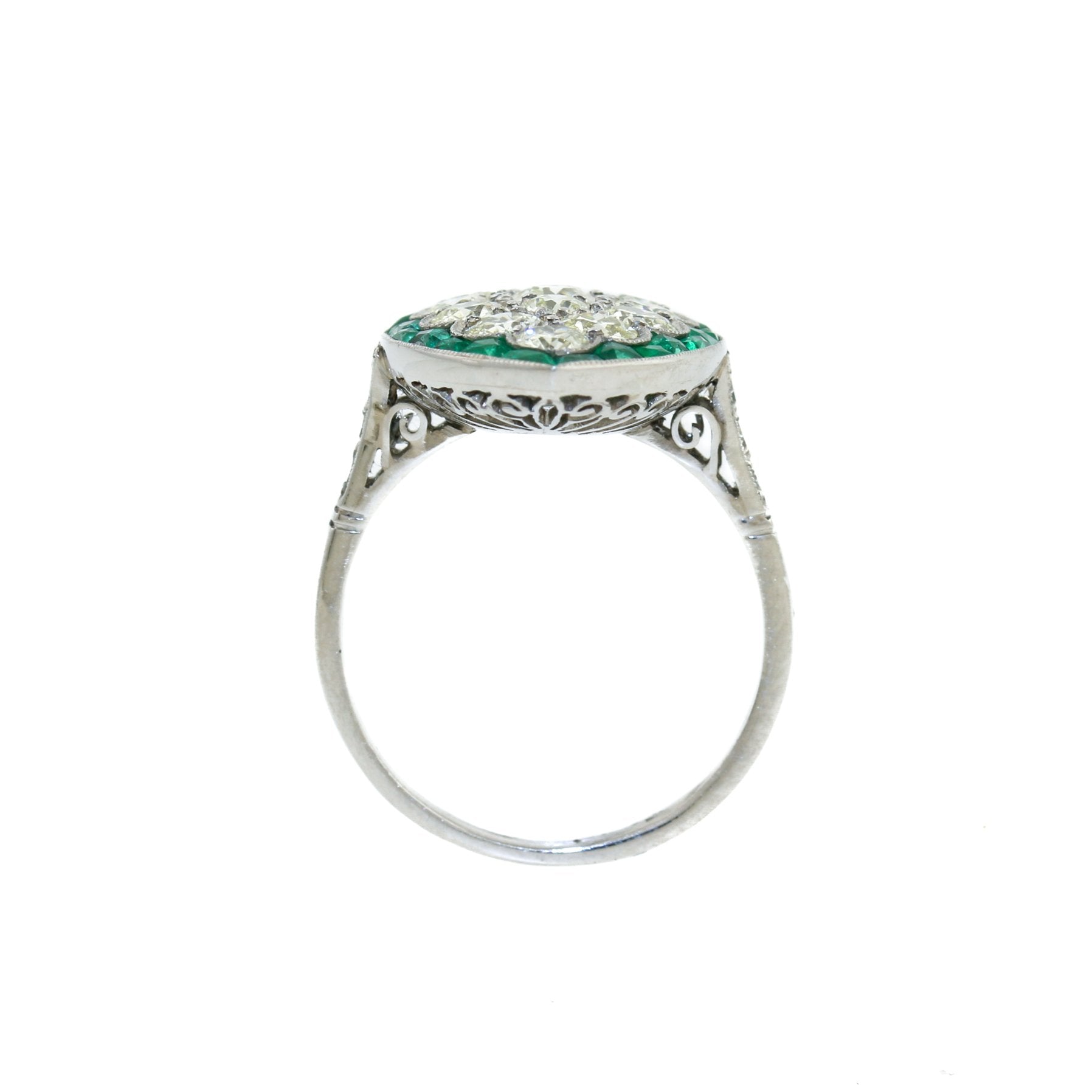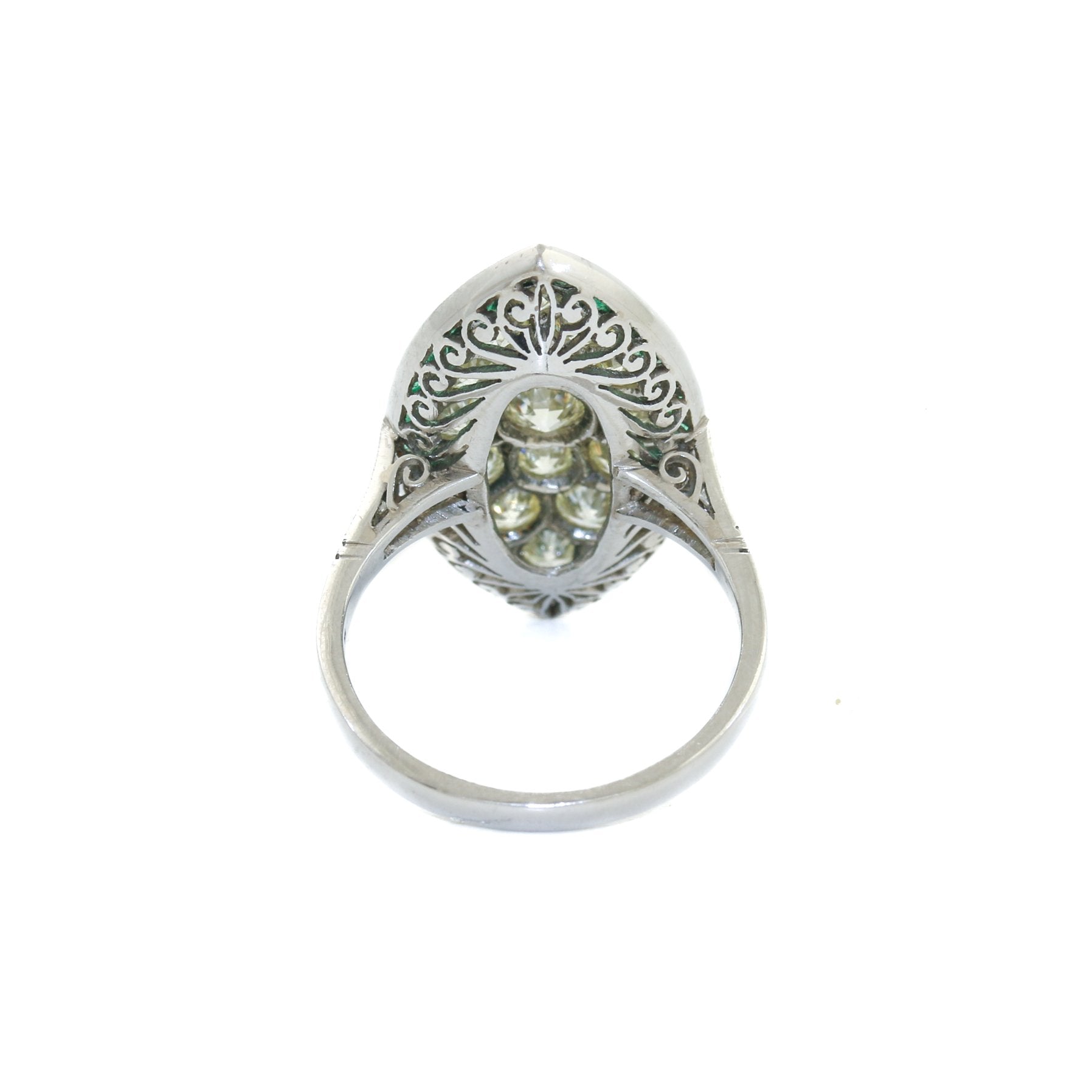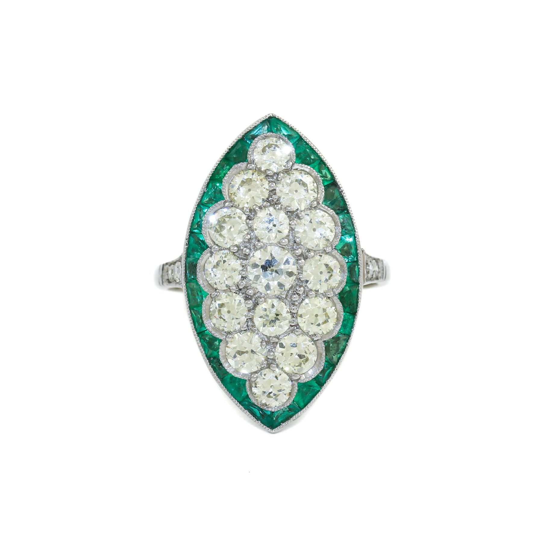 Antique Platinum x European Diamond & Emerald Cocktail Ring