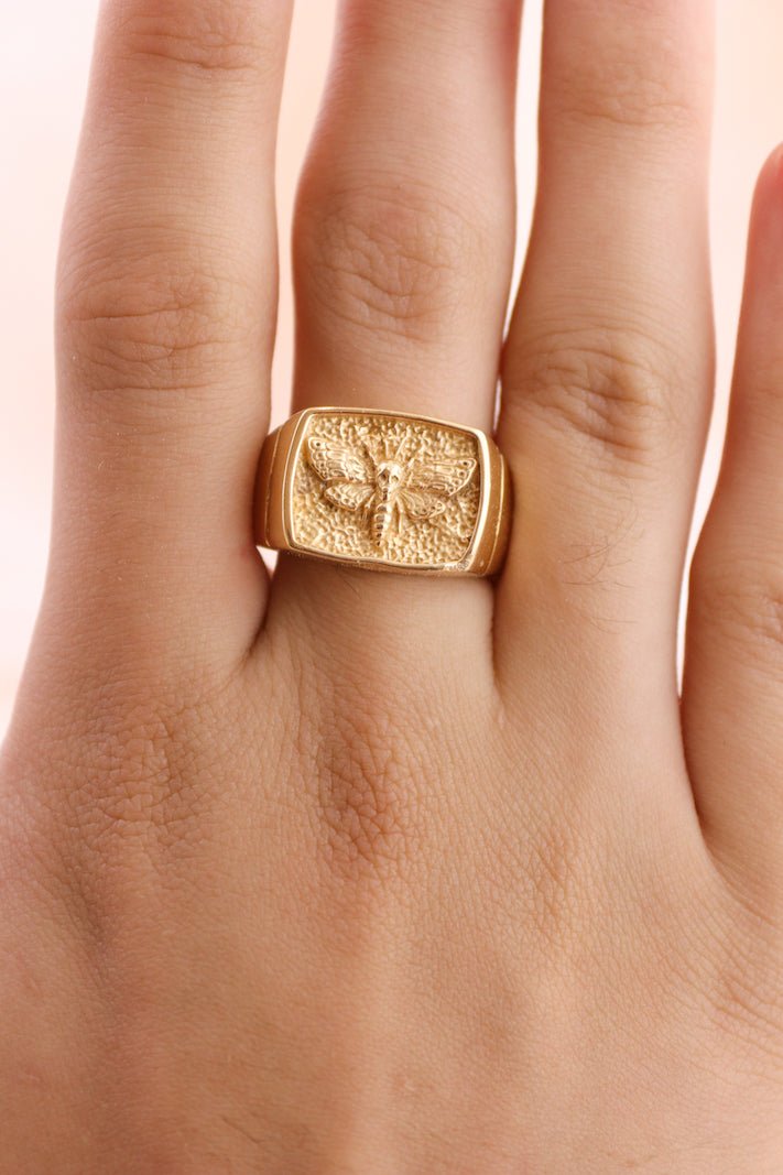 Death Moth Gold Signet Ring