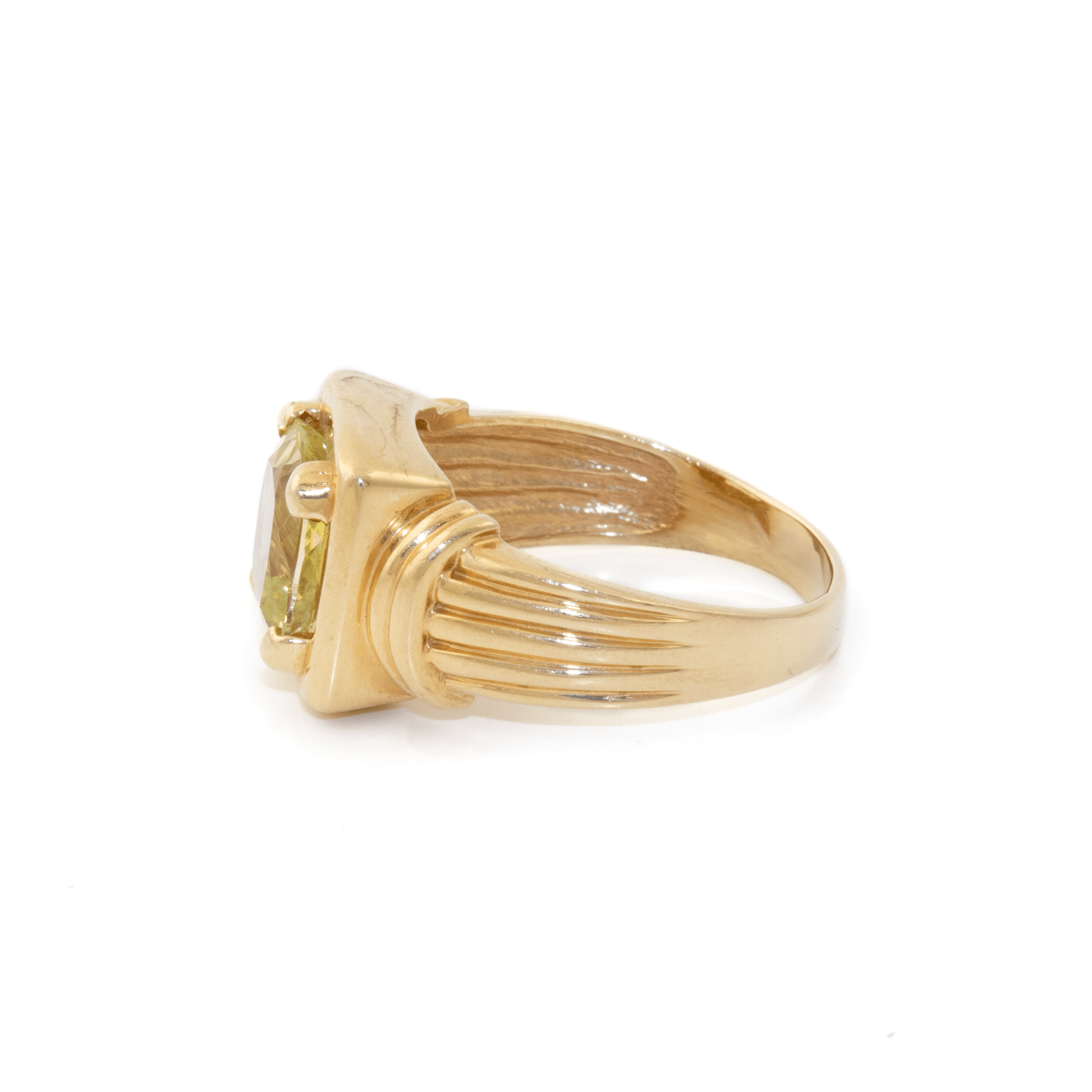 14k Gold x Vintage Cushion-Cut Citrine Art-Deco Signet