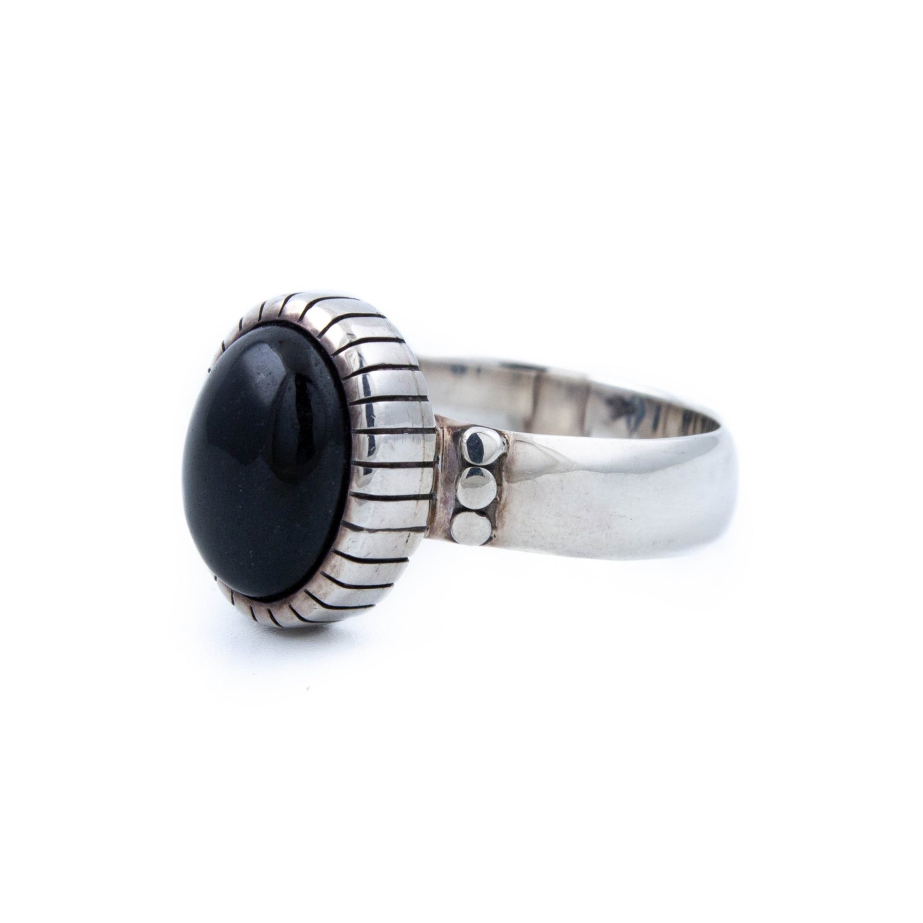 This sleek black jade ring by Kingdom is truly something! The stone which is surrounded by a sterling silver hand cut bezel is unique and striking. A statement ring that would look killer paired with any of your other favourite gems or works perfectly as a stand-alone piece!