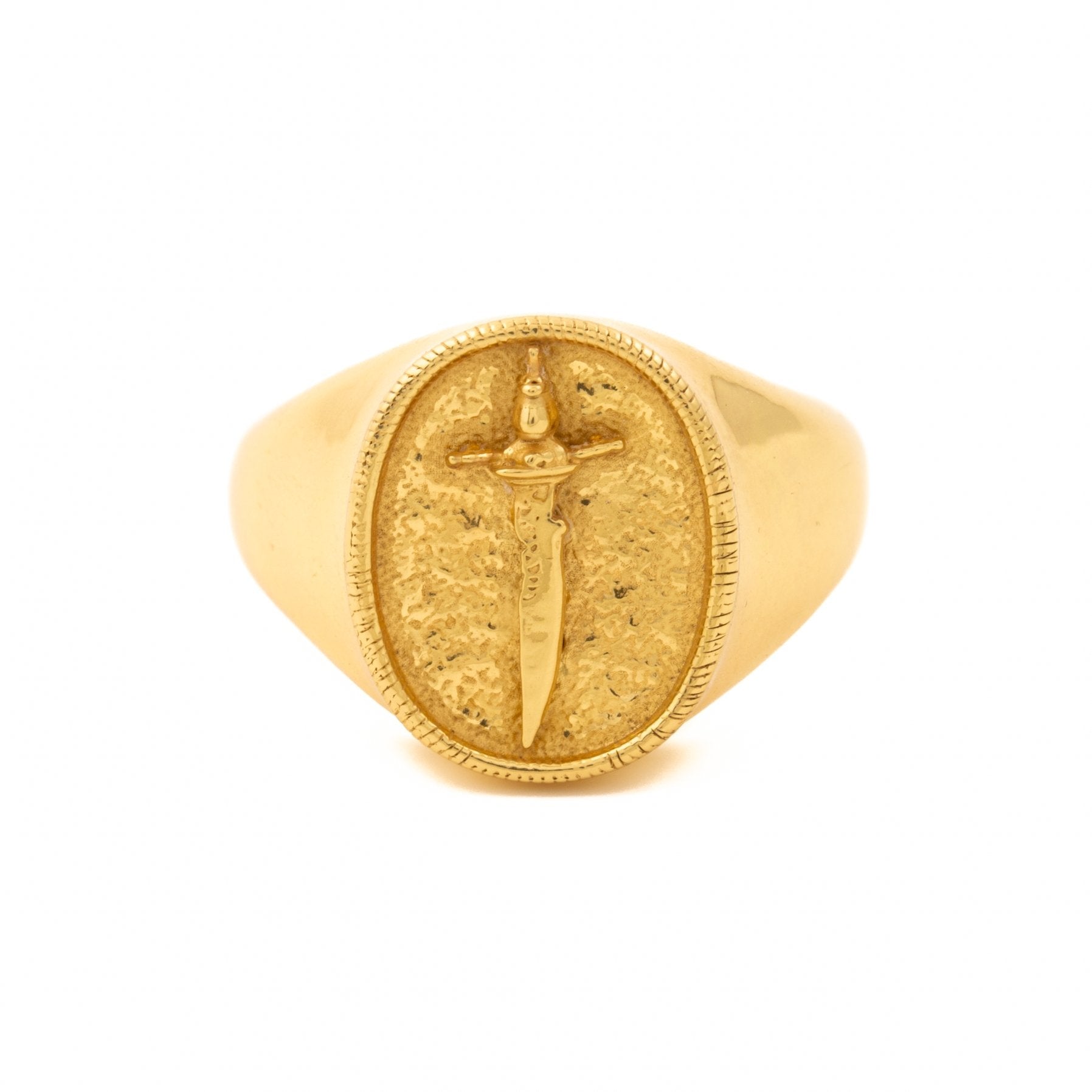This piece features a wicked cutlass sword design cast in a gold signet inspired by vintage biker rings. An amazing retro-looking piece with a some good weight and wicked imagery.
