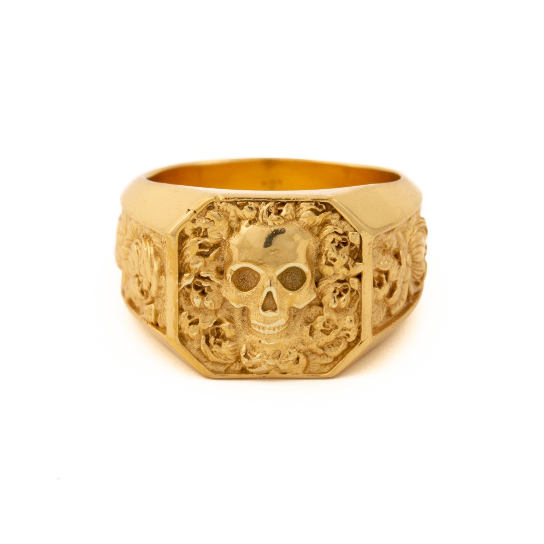 This badass beauty is a skull ring with some extra floral detailing to separate it from the countless other skulls rings out there.  This would look amazing paired up with some turquoise and a great addition to a fist full of mixed metals.